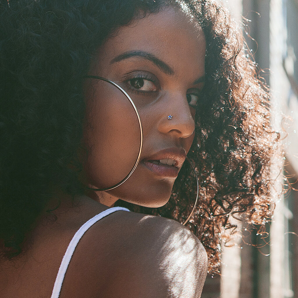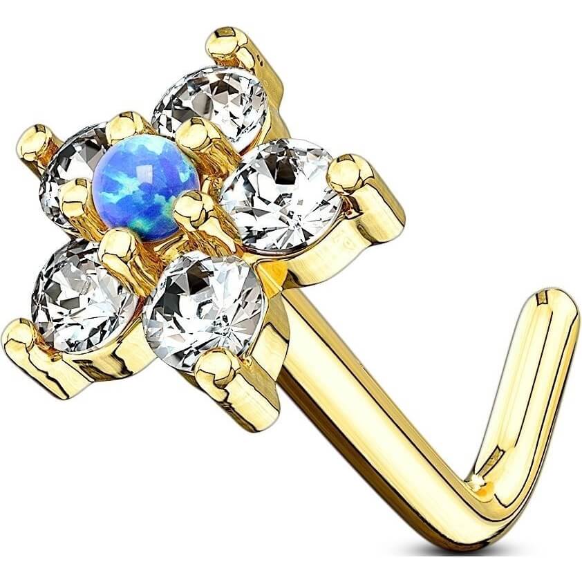 14 Karat Gold Nasenstecker L-Form Blume Zirkonia Gelbgold Weißgold