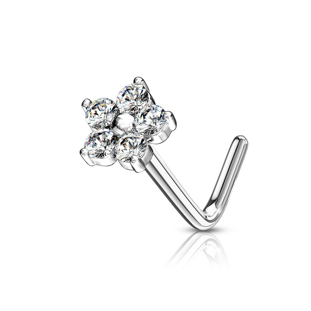 14 Karat Gold Nasenstecker L-Form Blume Zirkonia Gelbgold Weißgold