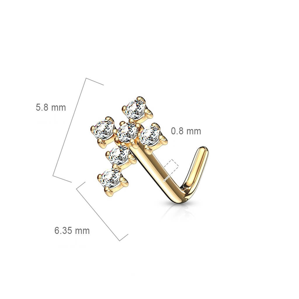 14 Karat Gold Nasenstecker L-Form Kreuz Zirkonia Gelbgold Weißgold