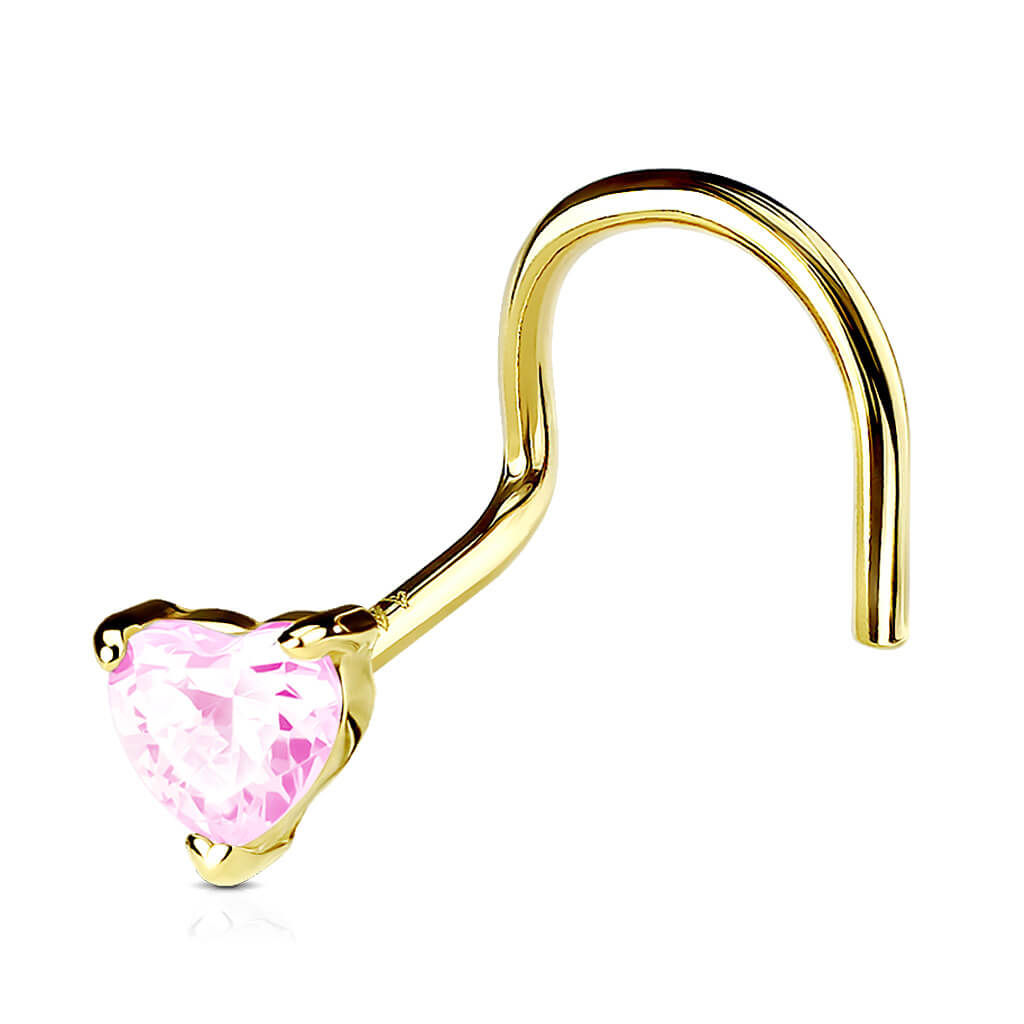14 Karat Gold Nasenstecker Herz Zirkonia Gelbgold Weißgold