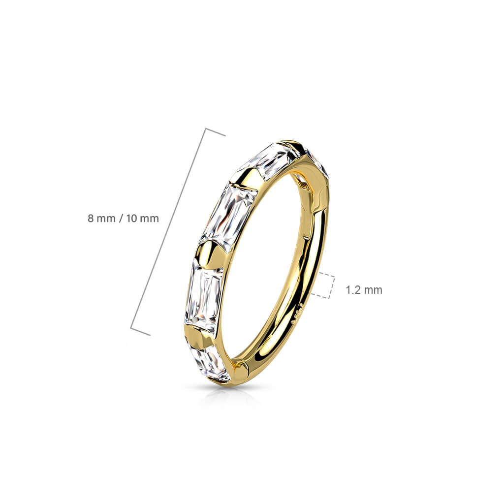 14 Karat Gold Ring Zirkonia Rechteck Gelbgold Weißgold Clicker