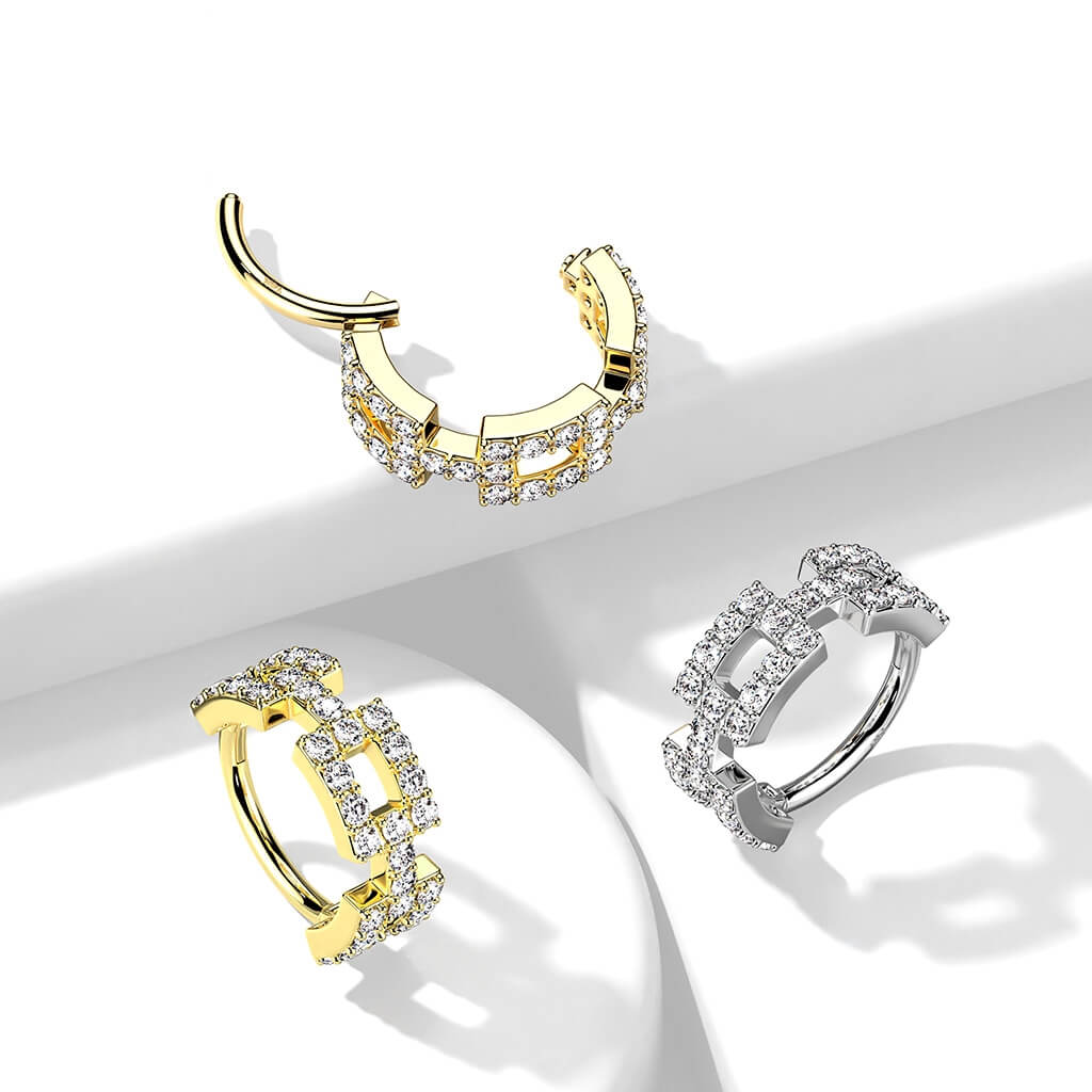 14 Karat Gold Ring Zirkonia Pave´Fassung Gelbgold Weißgold Clicker