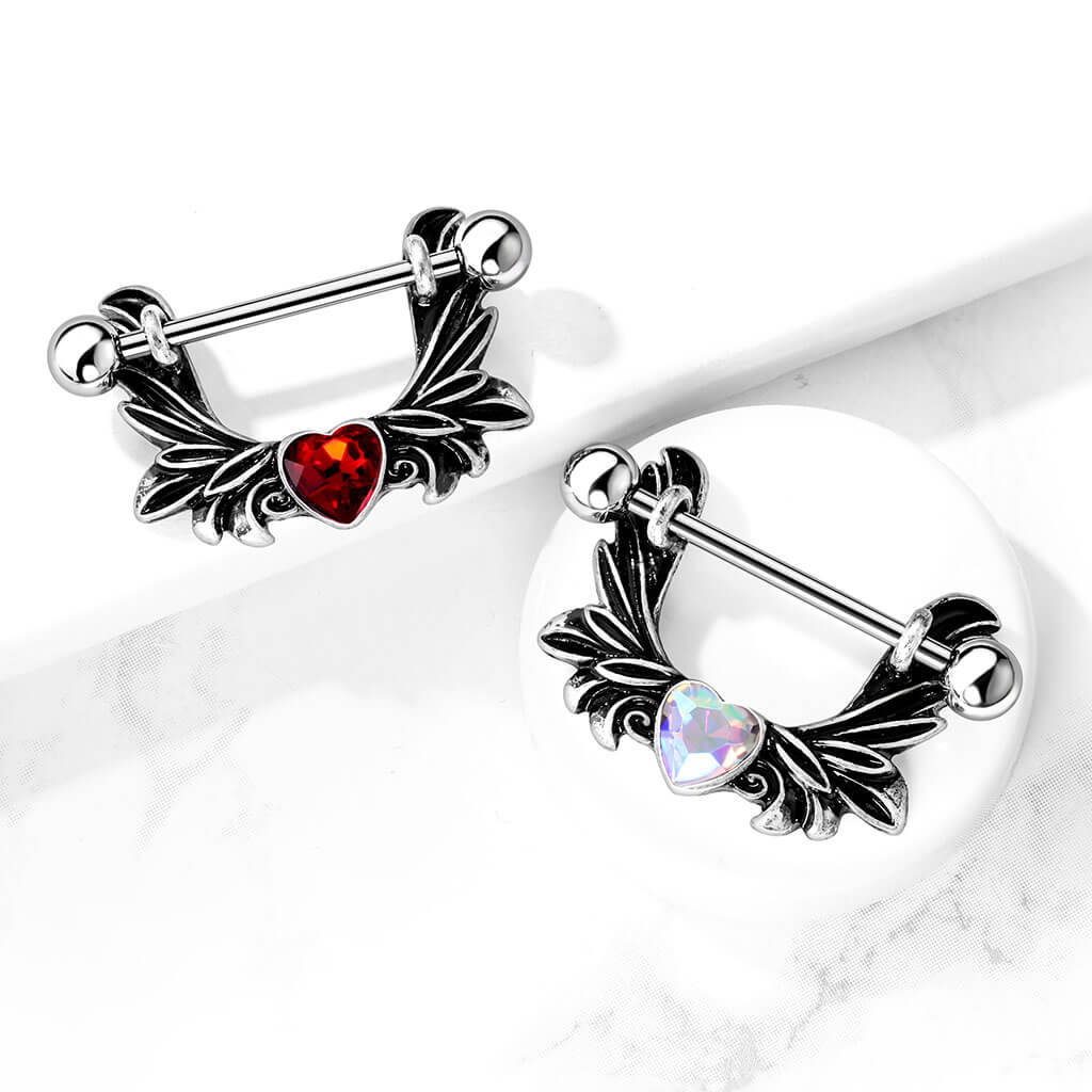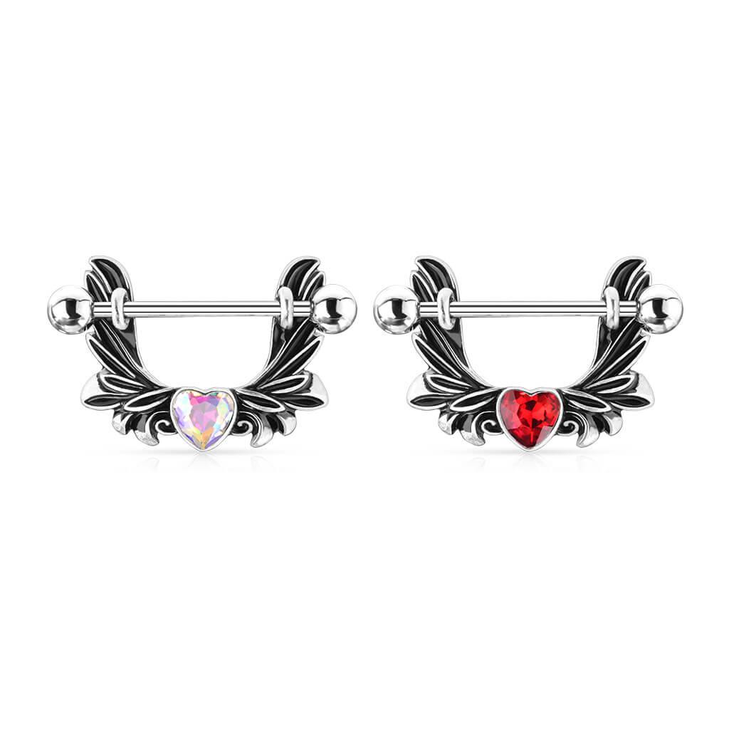 Nippelpiercing Engelsflügel Herz Zirkonia
