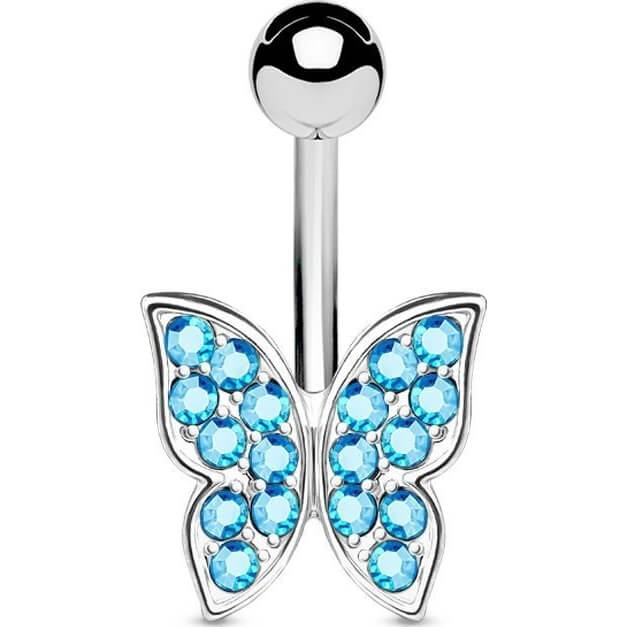 Belly Button Piercing Butterfly Zirconia Silver