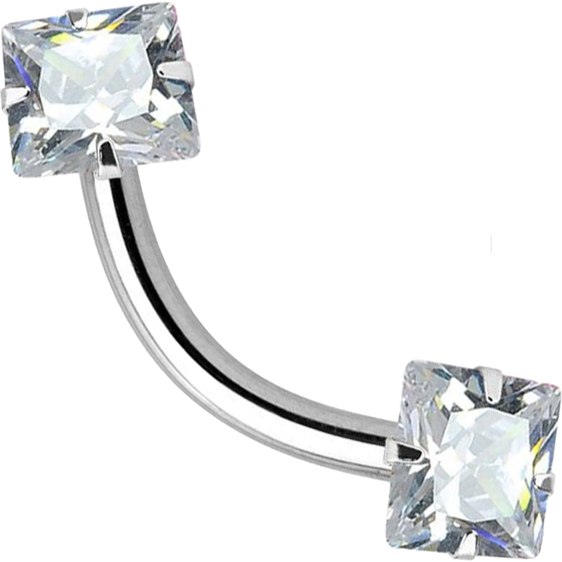 Eyebrow Piercing Square Zirconia Internally Threaded