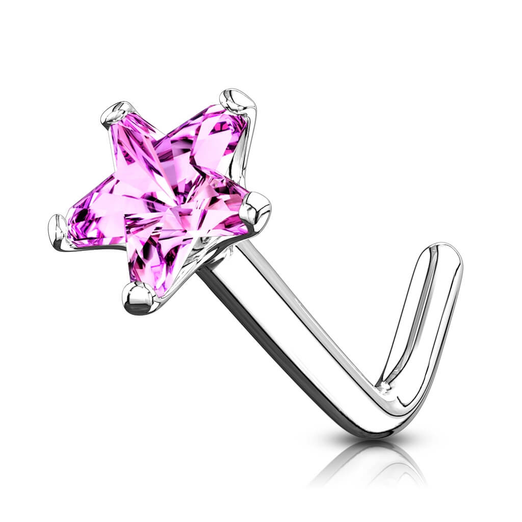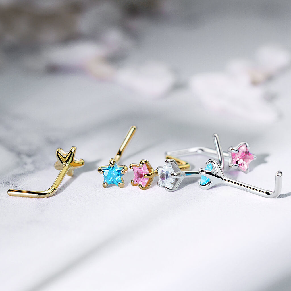Solid Gold 14 Carat Nose L-Shape Flower Zirconia
