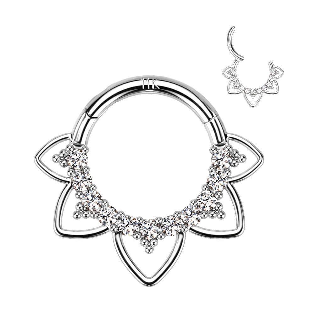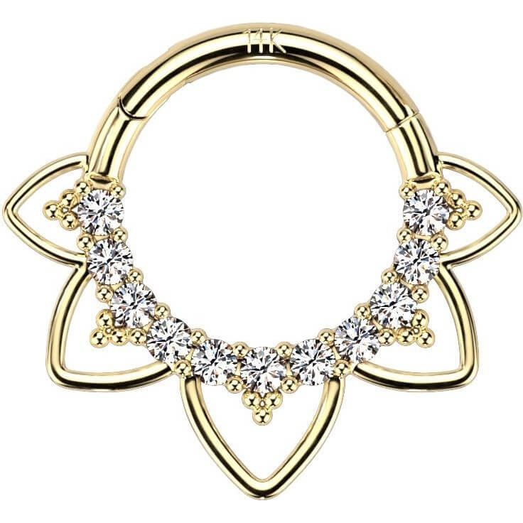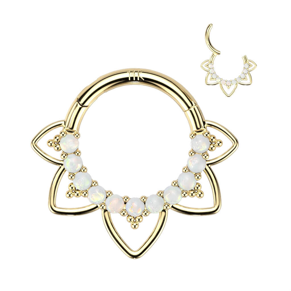Solid Gold 14 Carat Ring Heart Zirconia Opal Clicker