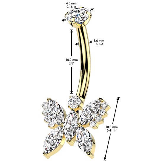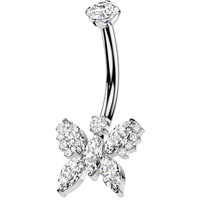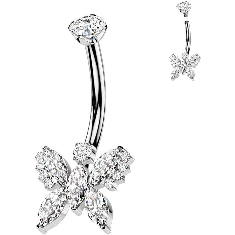 Titanium Belly Button Piercing butterfly zirconia Internally Threaded