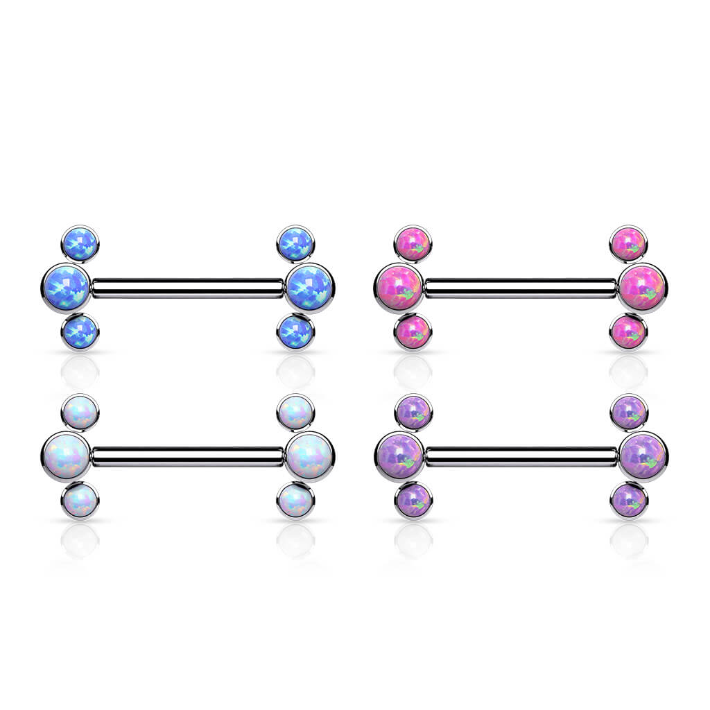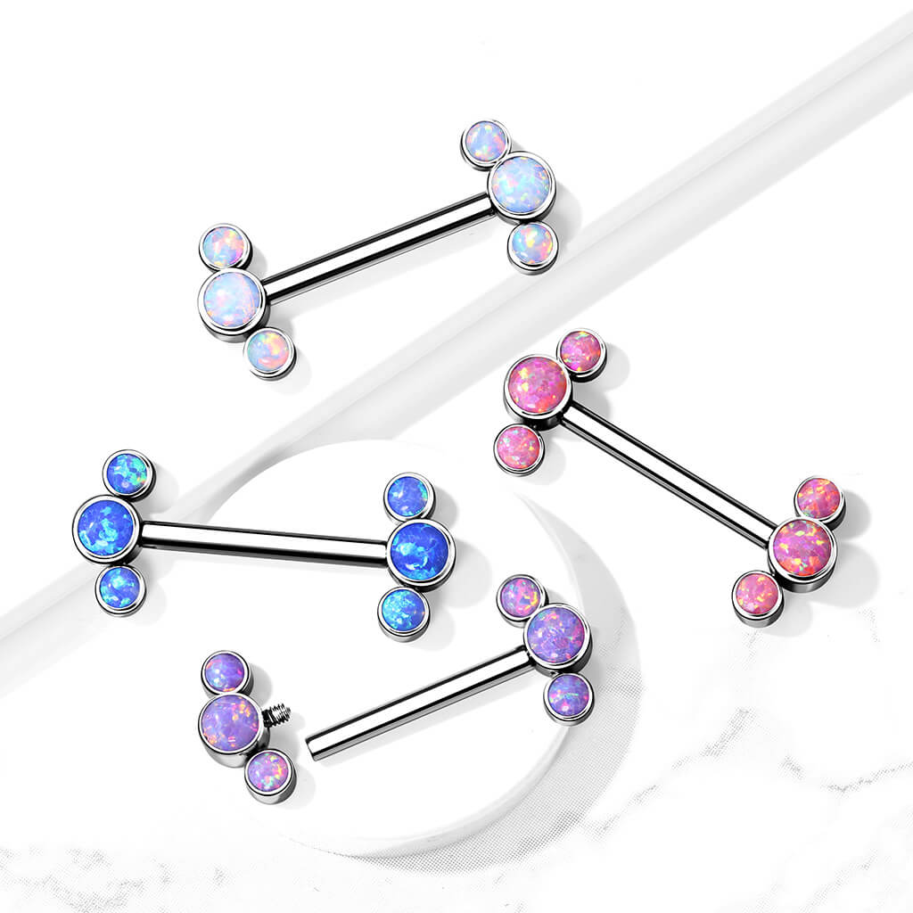 Titanium Nipple Piercing 3 Opal Silver Internally Threaded