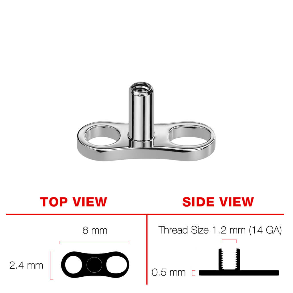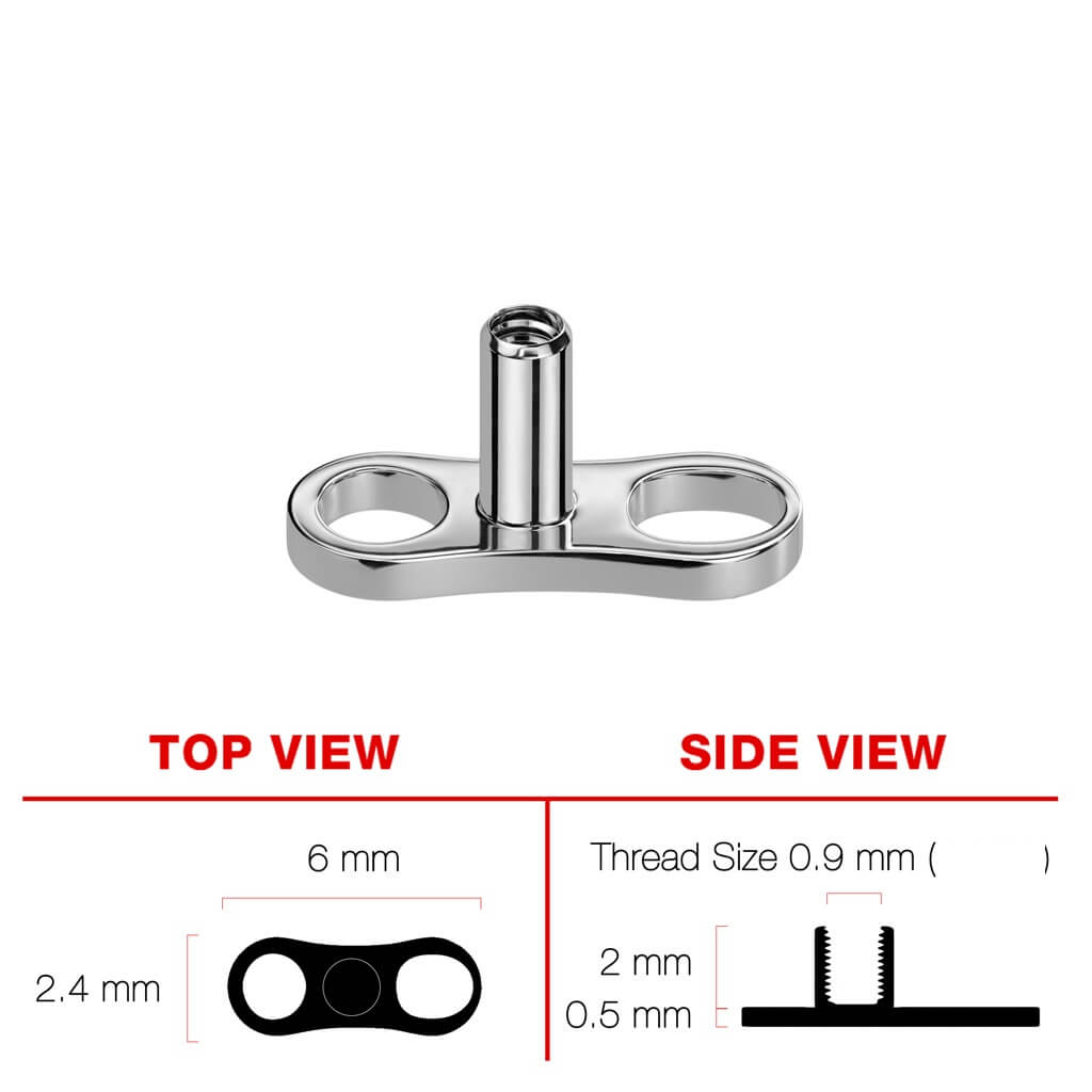 Titanium dermal anchor base 2 holes 2mm, 2.5mm and 3mm Rise Internally Threaded