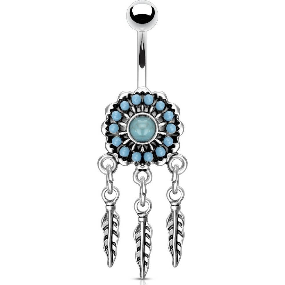 Piercing Nombril Attrape-Rêve Turquoise Argent