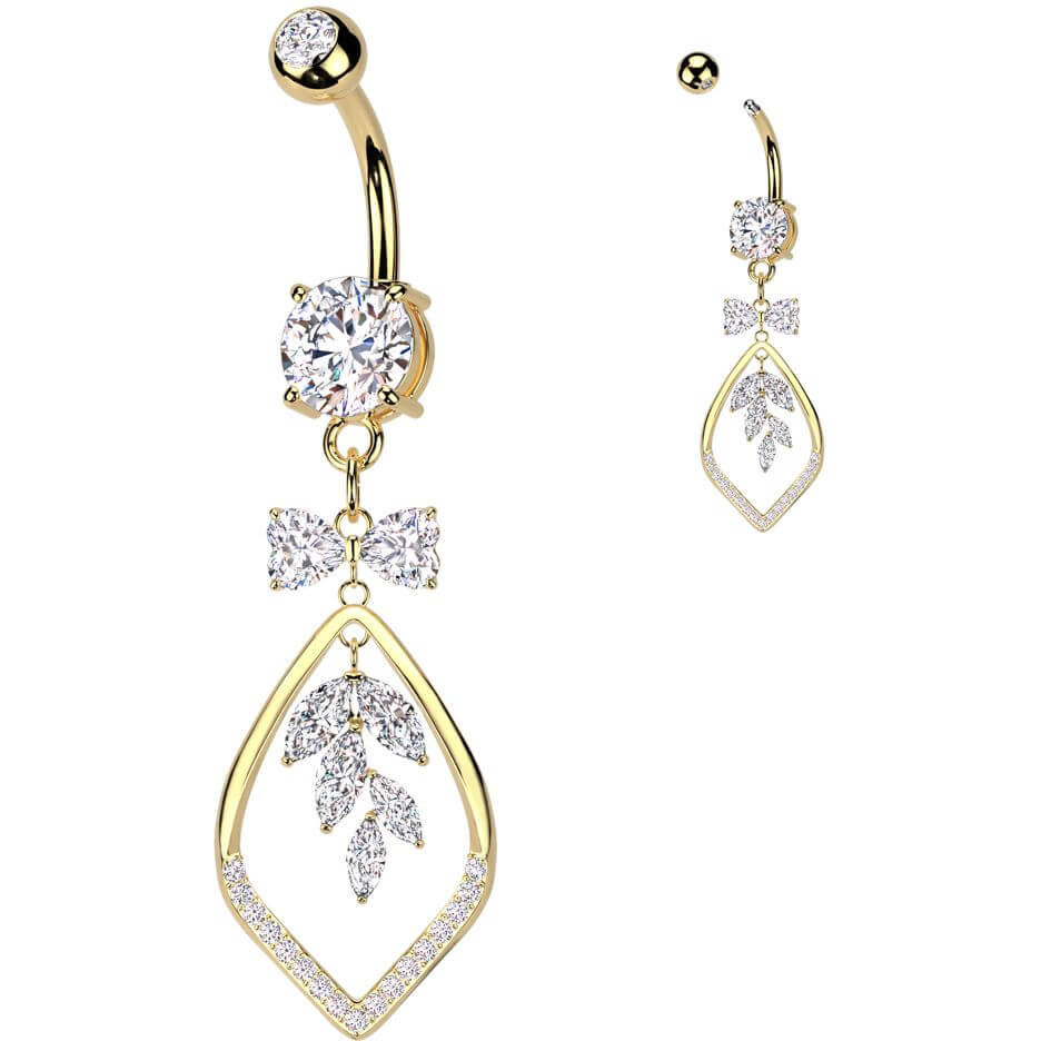 Belly Button Piercing ribbon vine leaf dangle zirconia