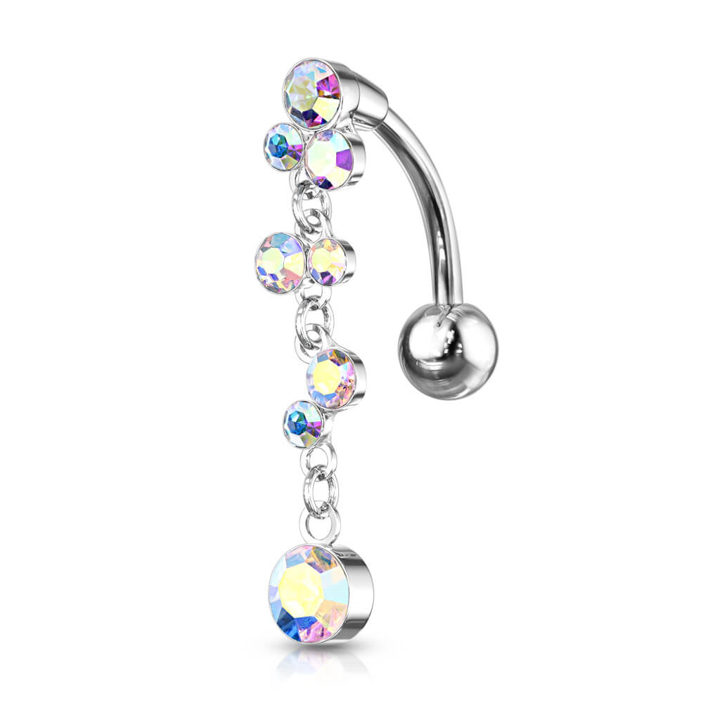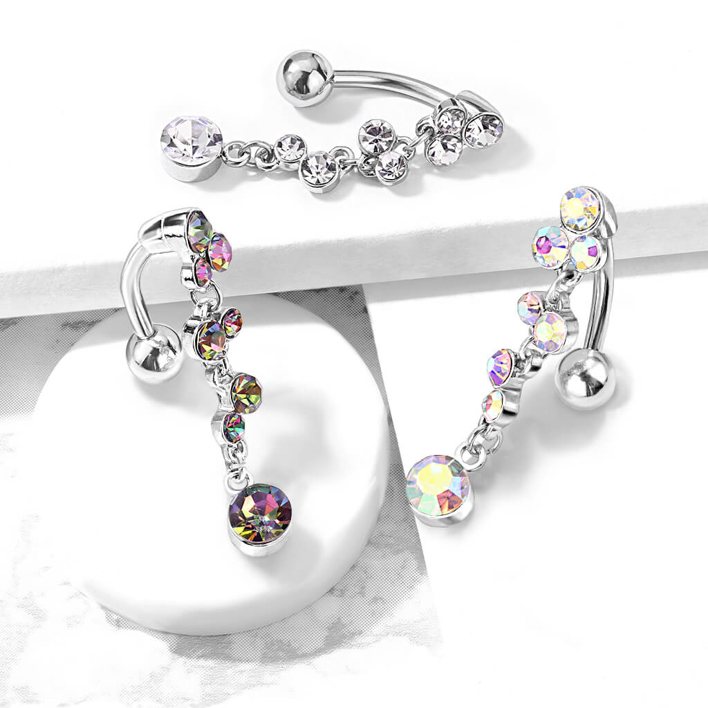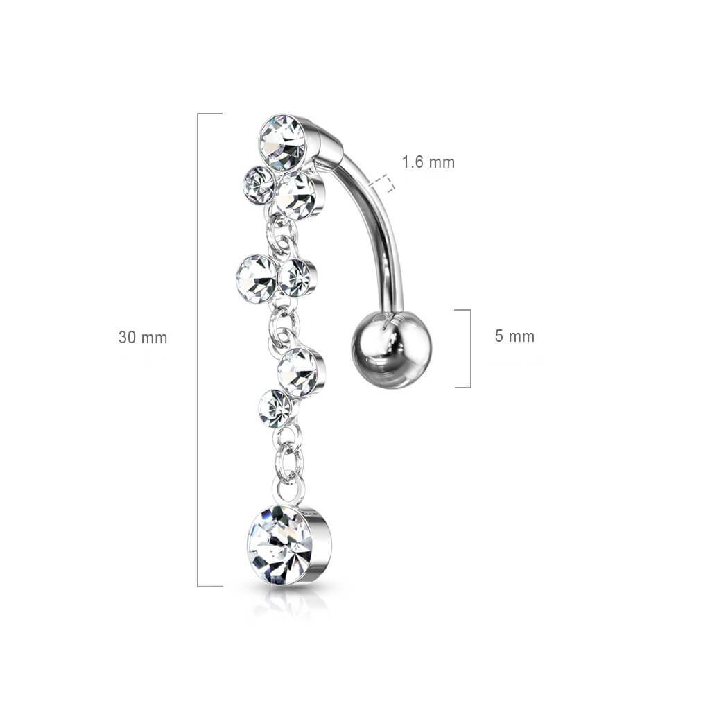 Piercing Ombelico Sfere Top Down pendenti zirconi e argento