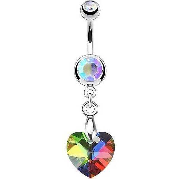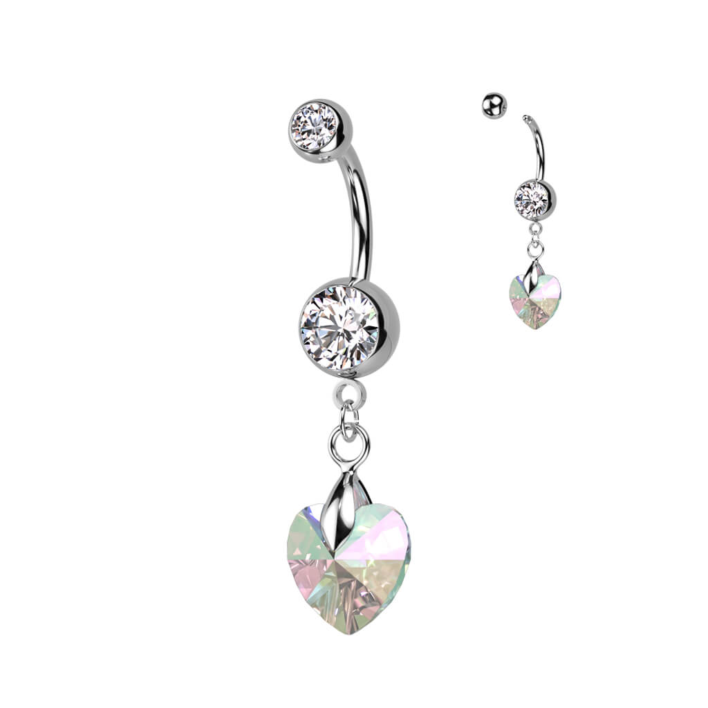 Piercing Ombelico Pendente a cuore in argento e zirconi