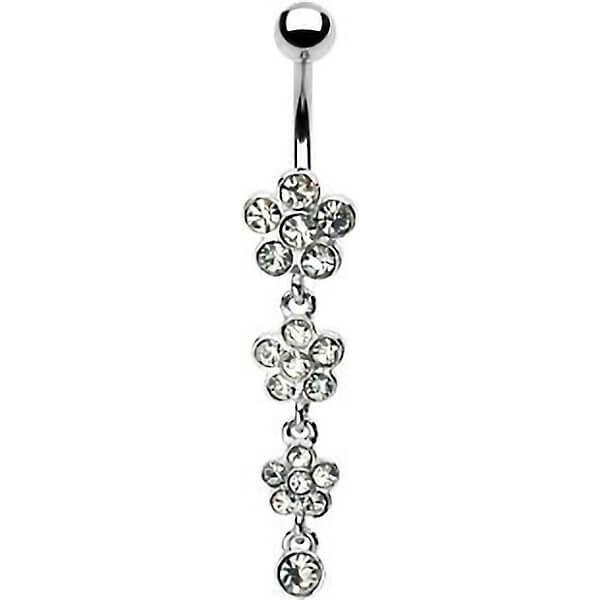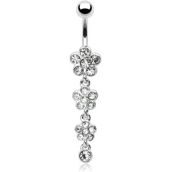 Piercing Ombelico Pendente con fiori di zirconi