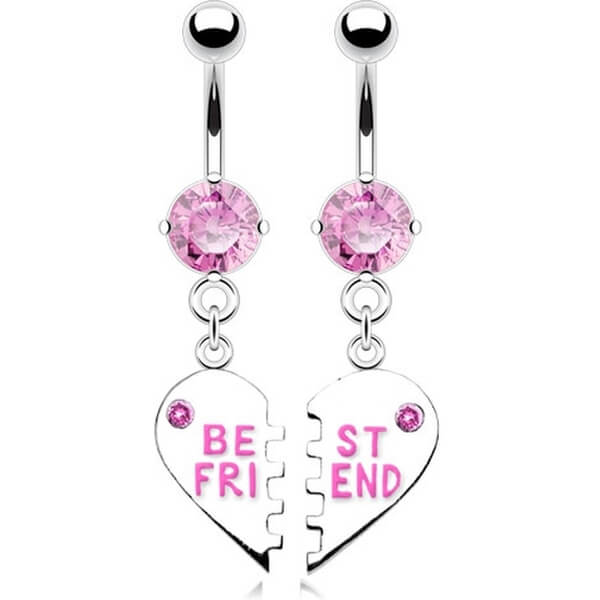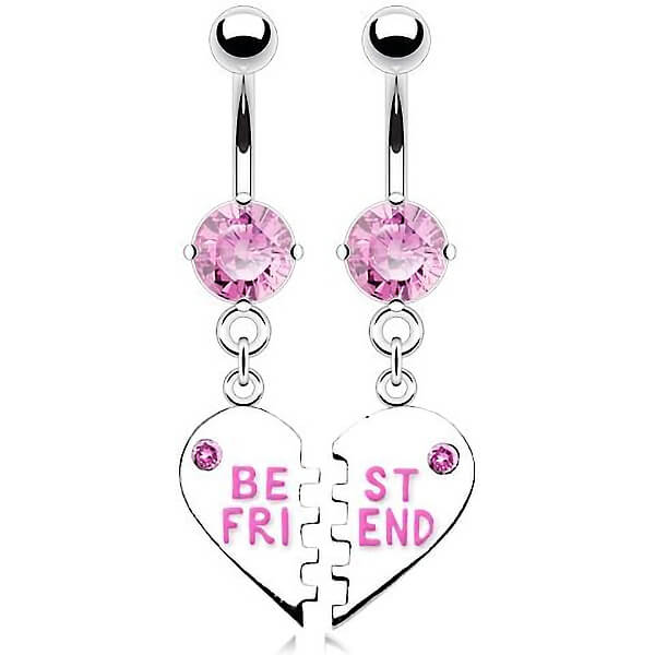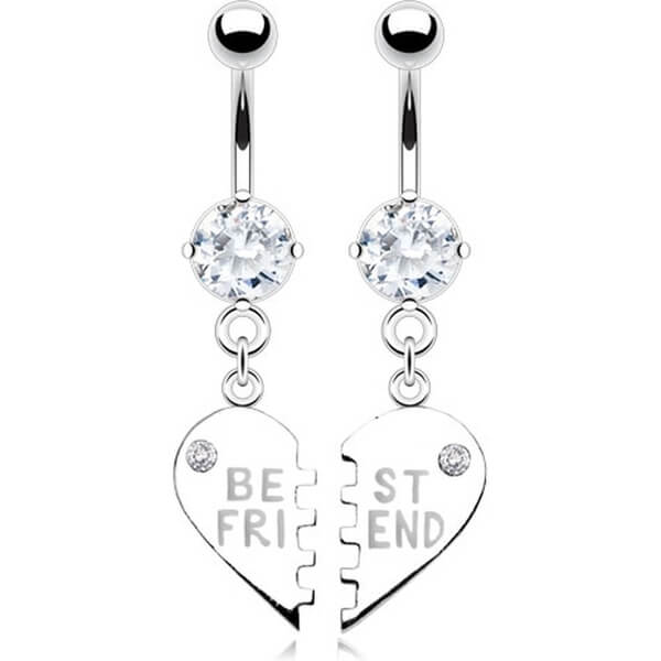 Piercing Ombelico Pendente con scritta BEST FRIEND a Cuore diviso con Zirconi