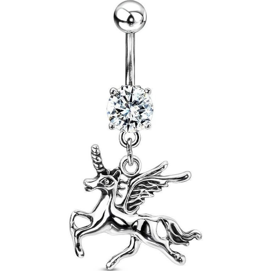 Piercing Ombelico Zirconi con pendente unicorno d´argento