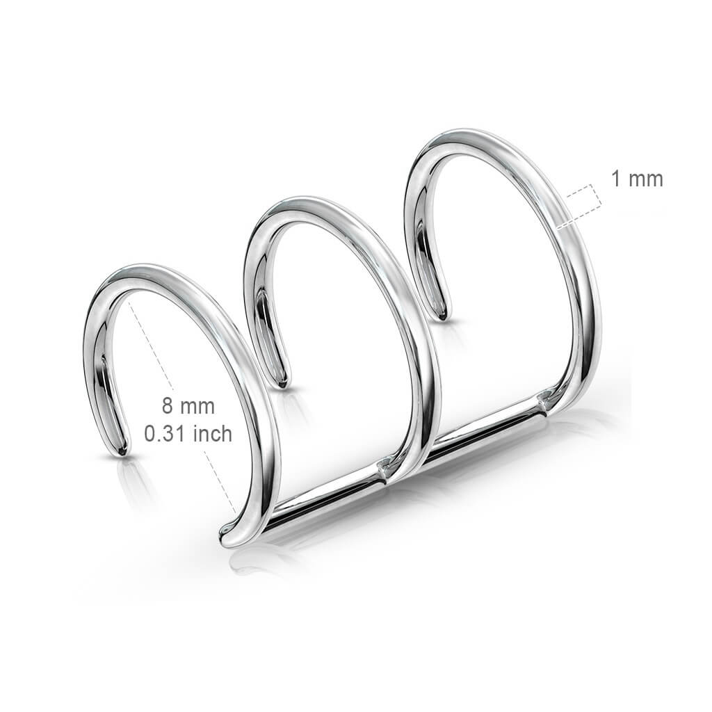 Finto all'Orecchio Triplo anello d'argento Pieghevole
