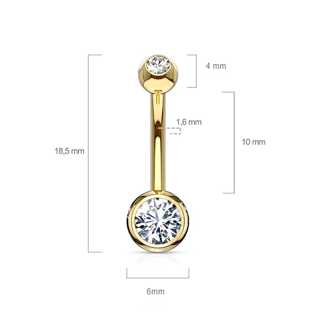 Oro 14 kt Piercing Ombelico Zircone rotondo