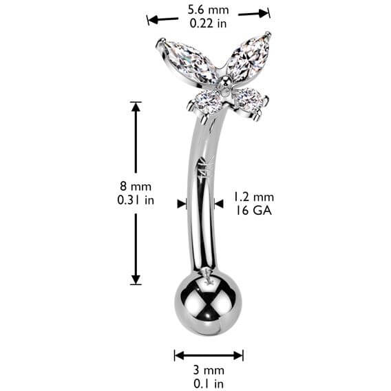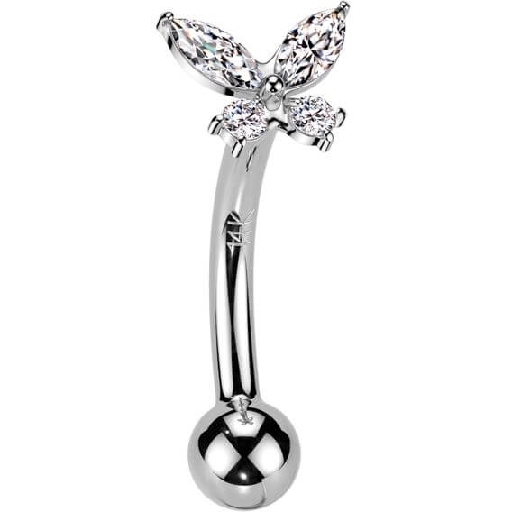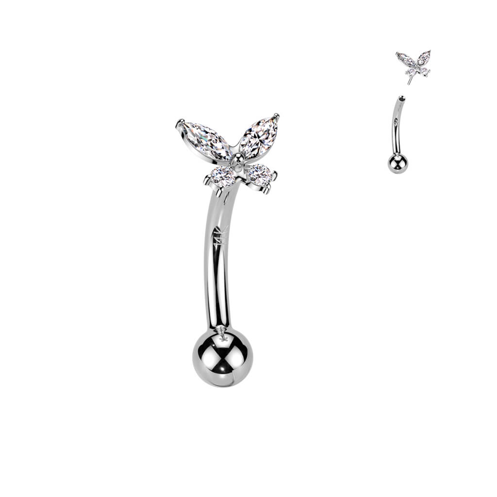 Solid Gold 14 Carat Eyebrow Piercing butterfly zirconia Push-In