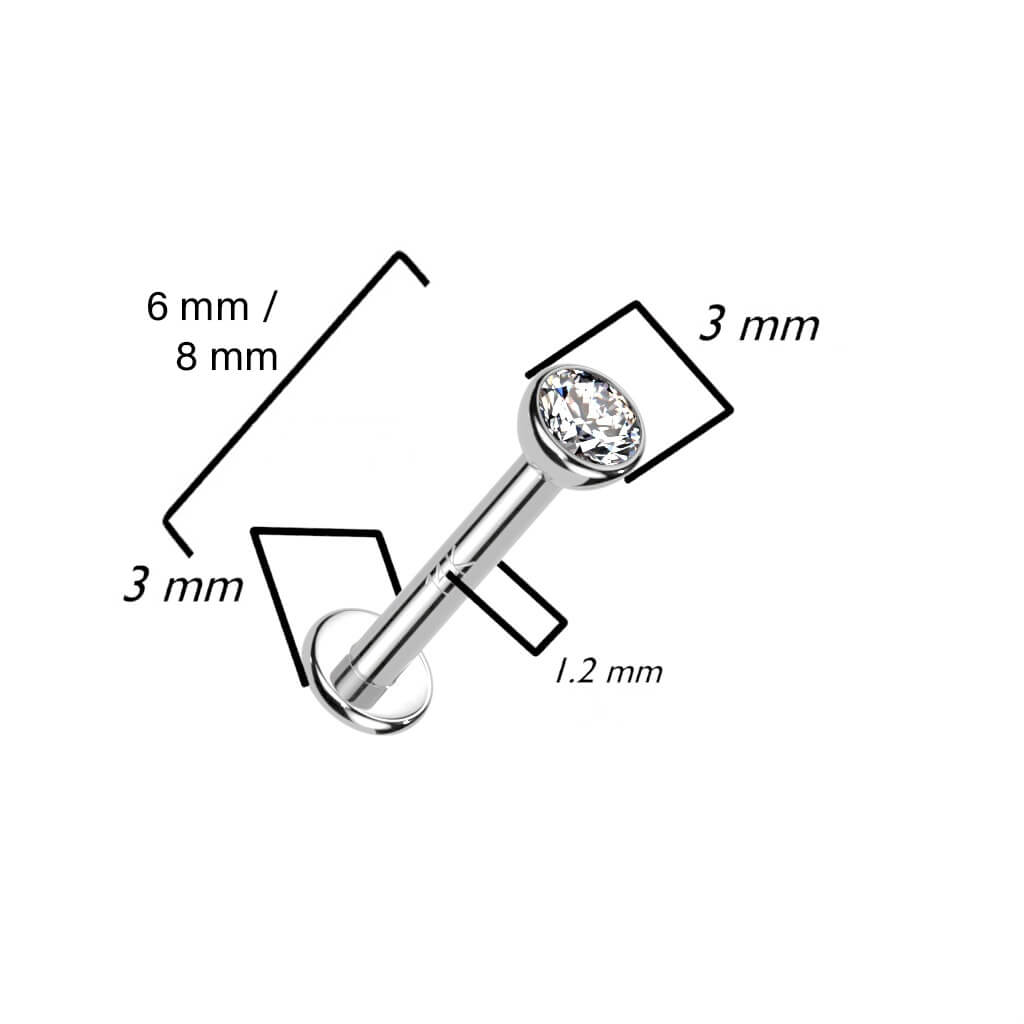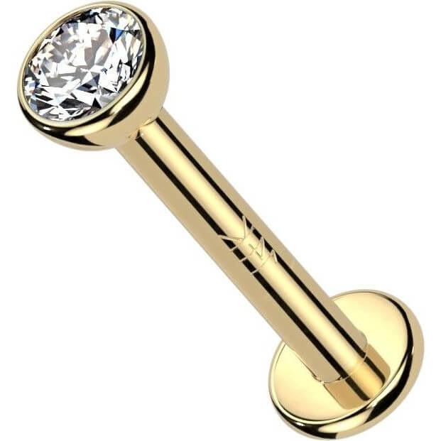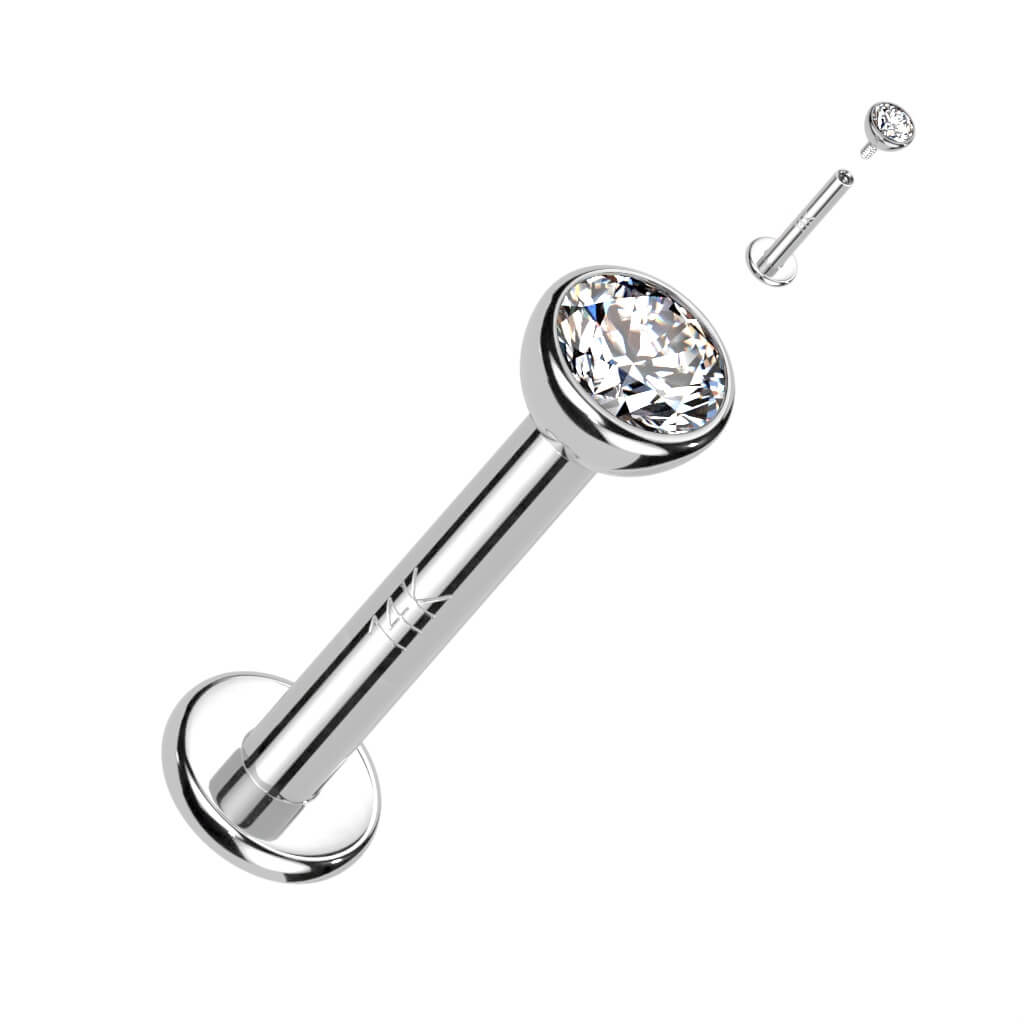 Oro 14 kt Labret Tondo piatto con zircone Filettatura Interna