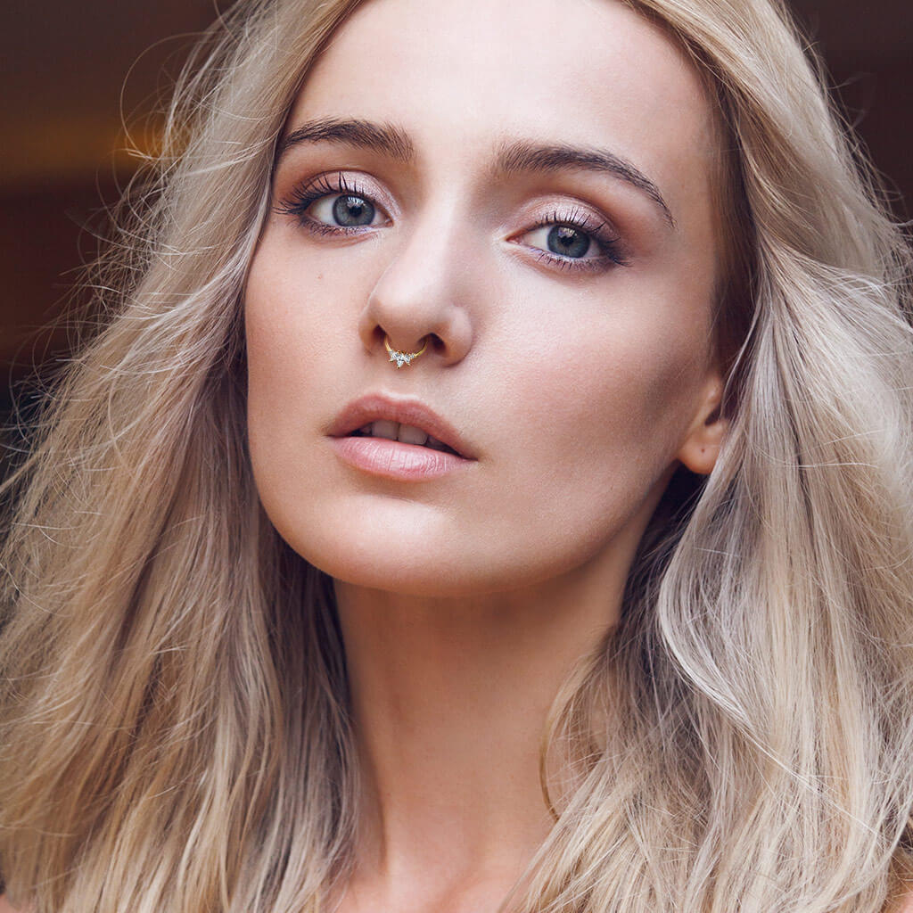 Oro 14 kt Anello Piercing 3 Zirconi taglio marquse Clicker