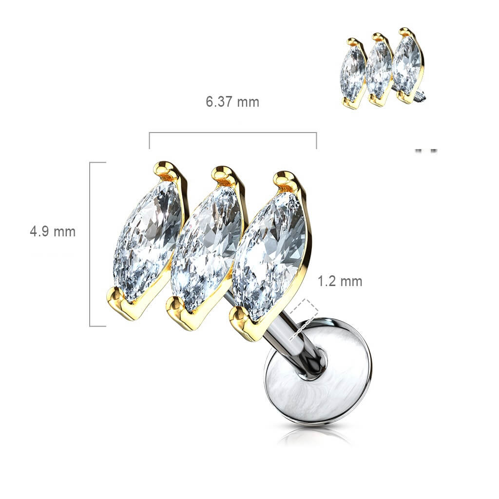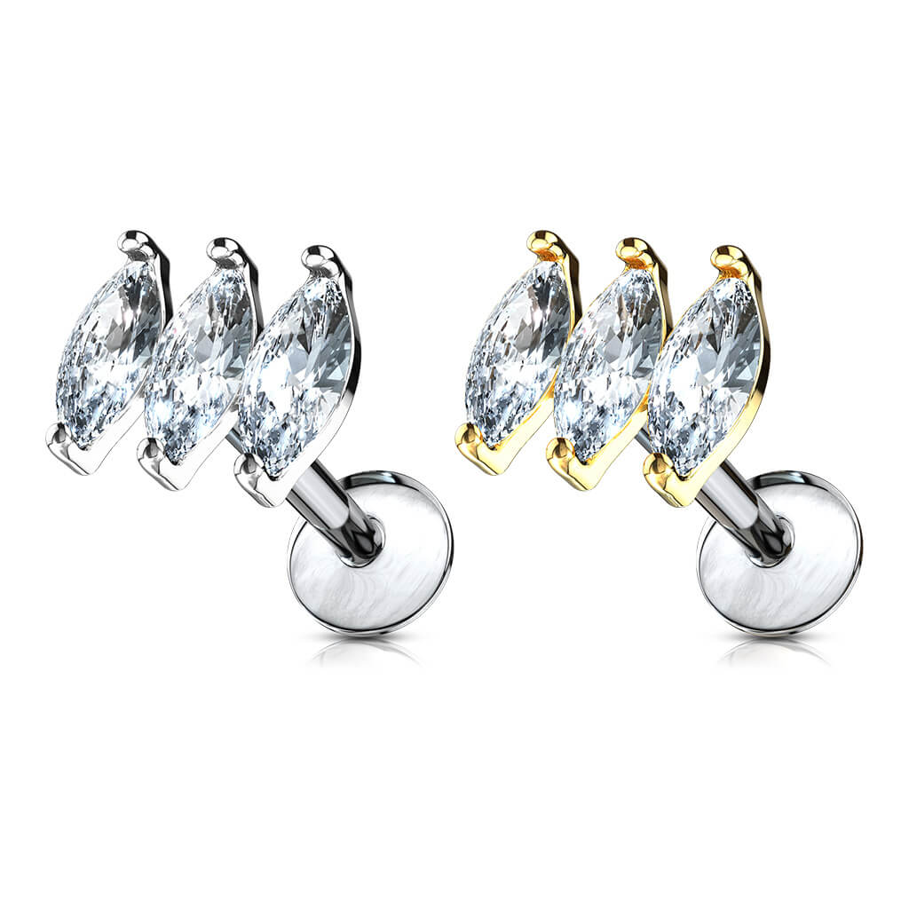Labret 3 Zirconi taglio marquise Filettatura Interna