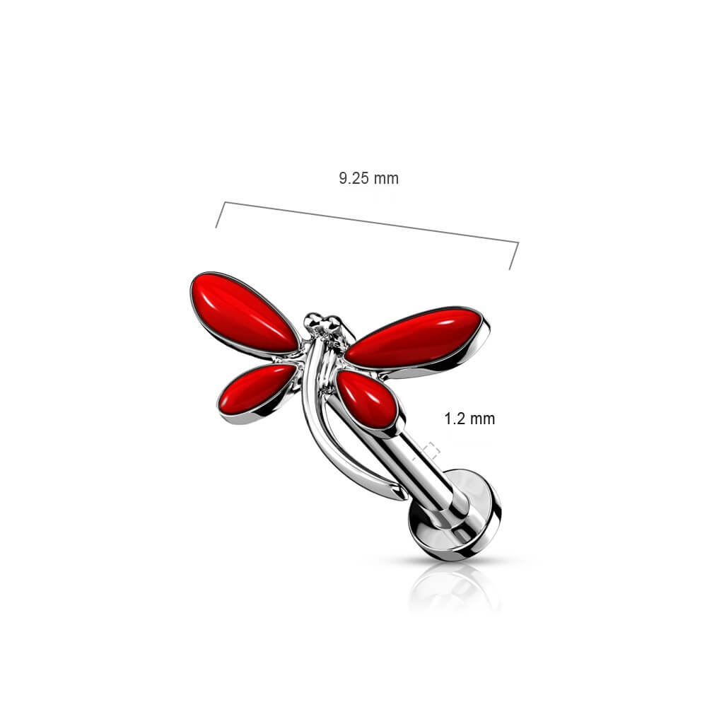 Labret Libellula d´argento Filettatura Interna