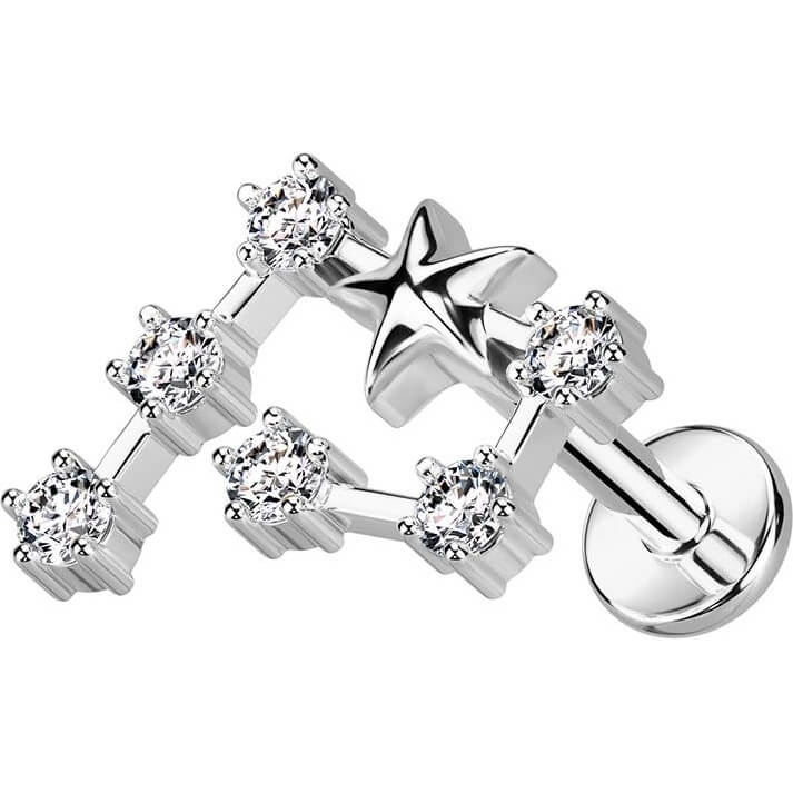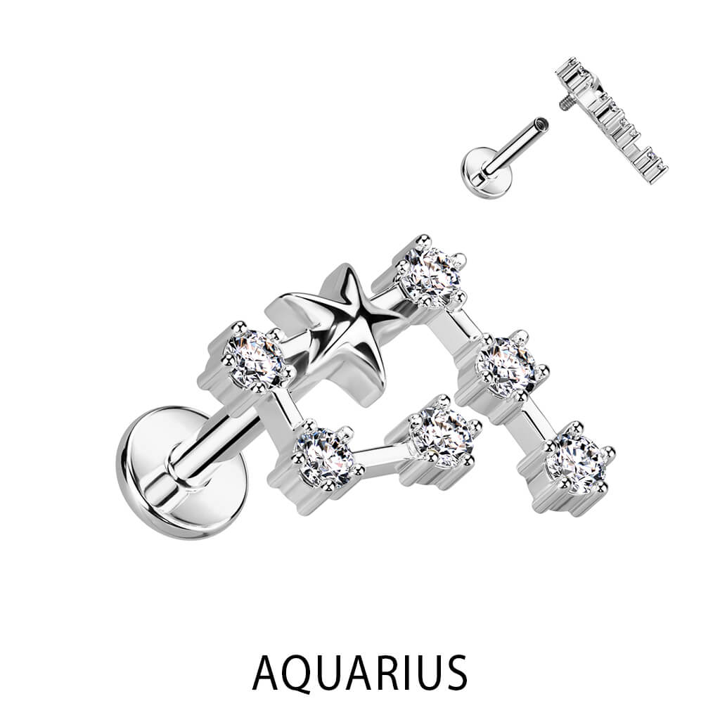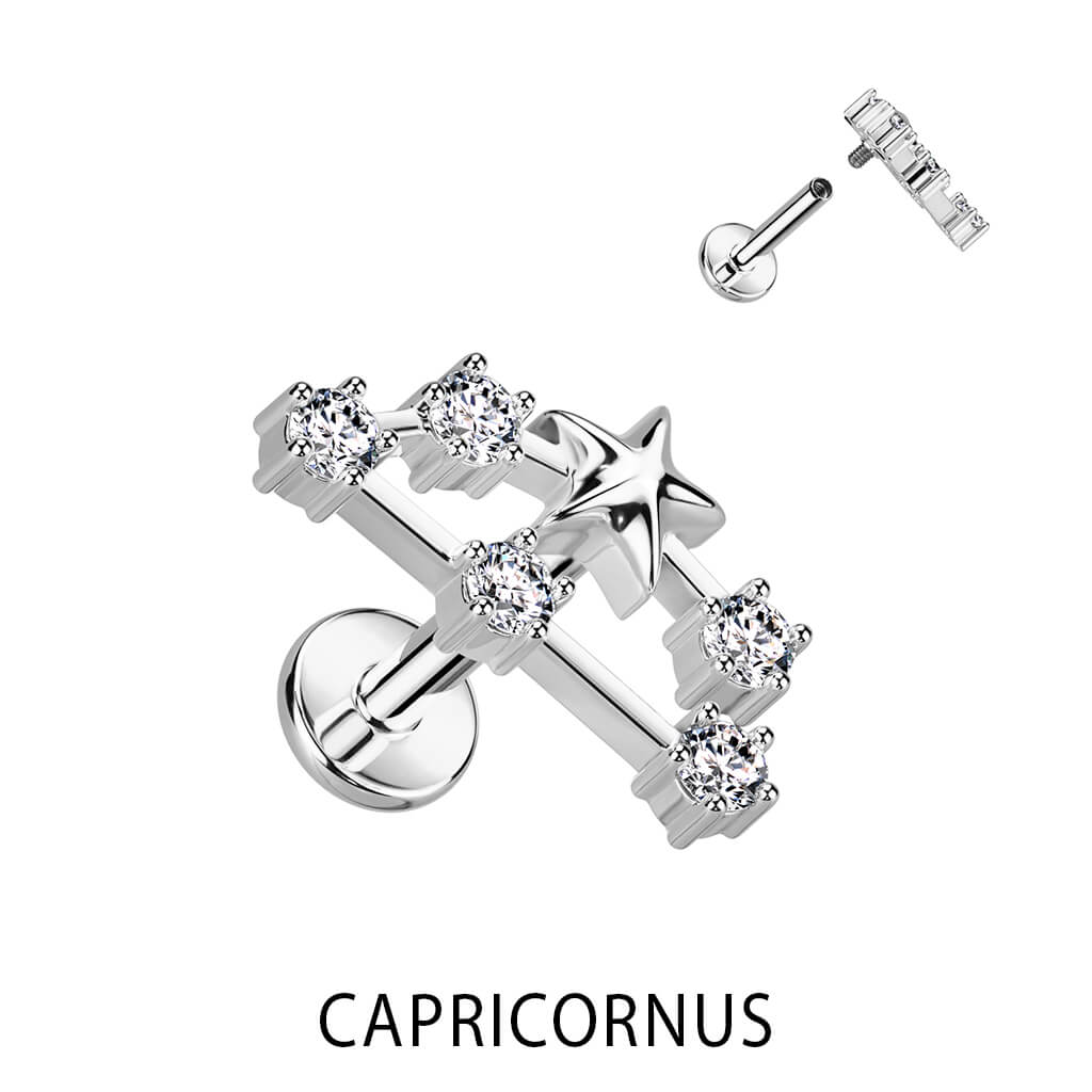 Labret Segni zodiacali Zirconi e Argento Filettatura Interna