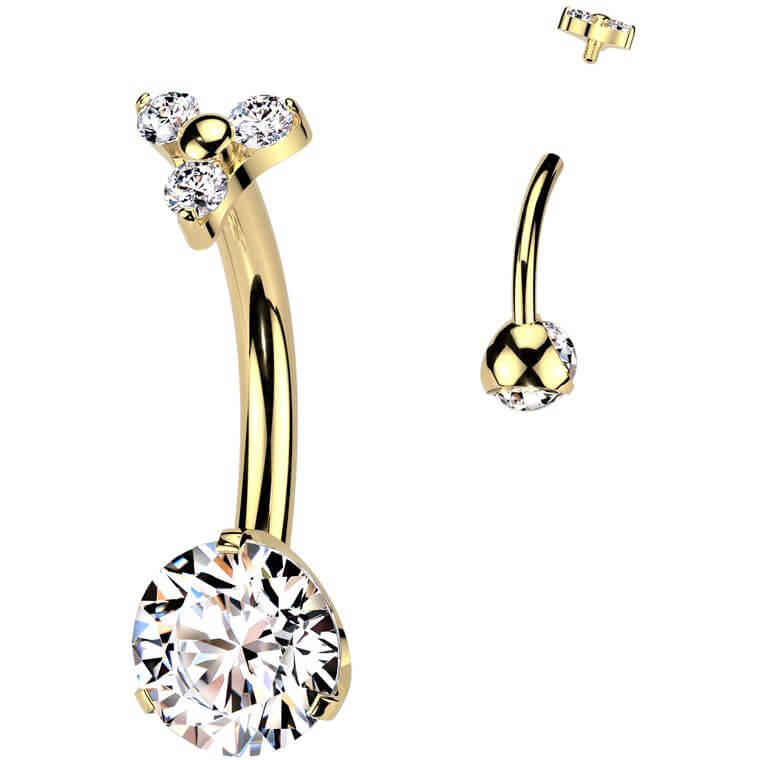 Titanium Belly Button Piercing round zirconia 3 small zirconias Internally Threaded