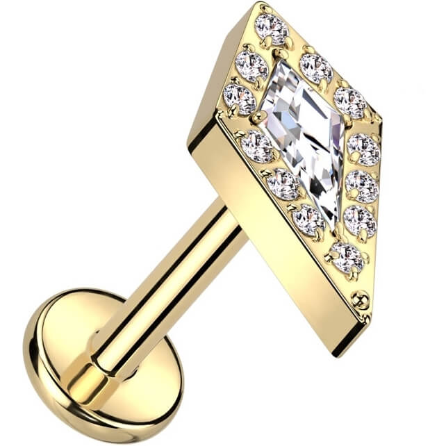 Titanio Labret Punta di lancia con zirconi Filettatura Interna
