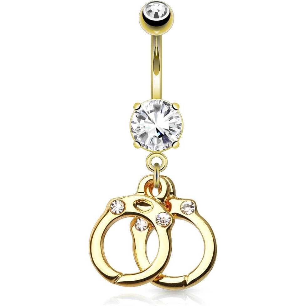 Kolczyk do pępka kajdanki zawieszka cyrkonia pozłacany