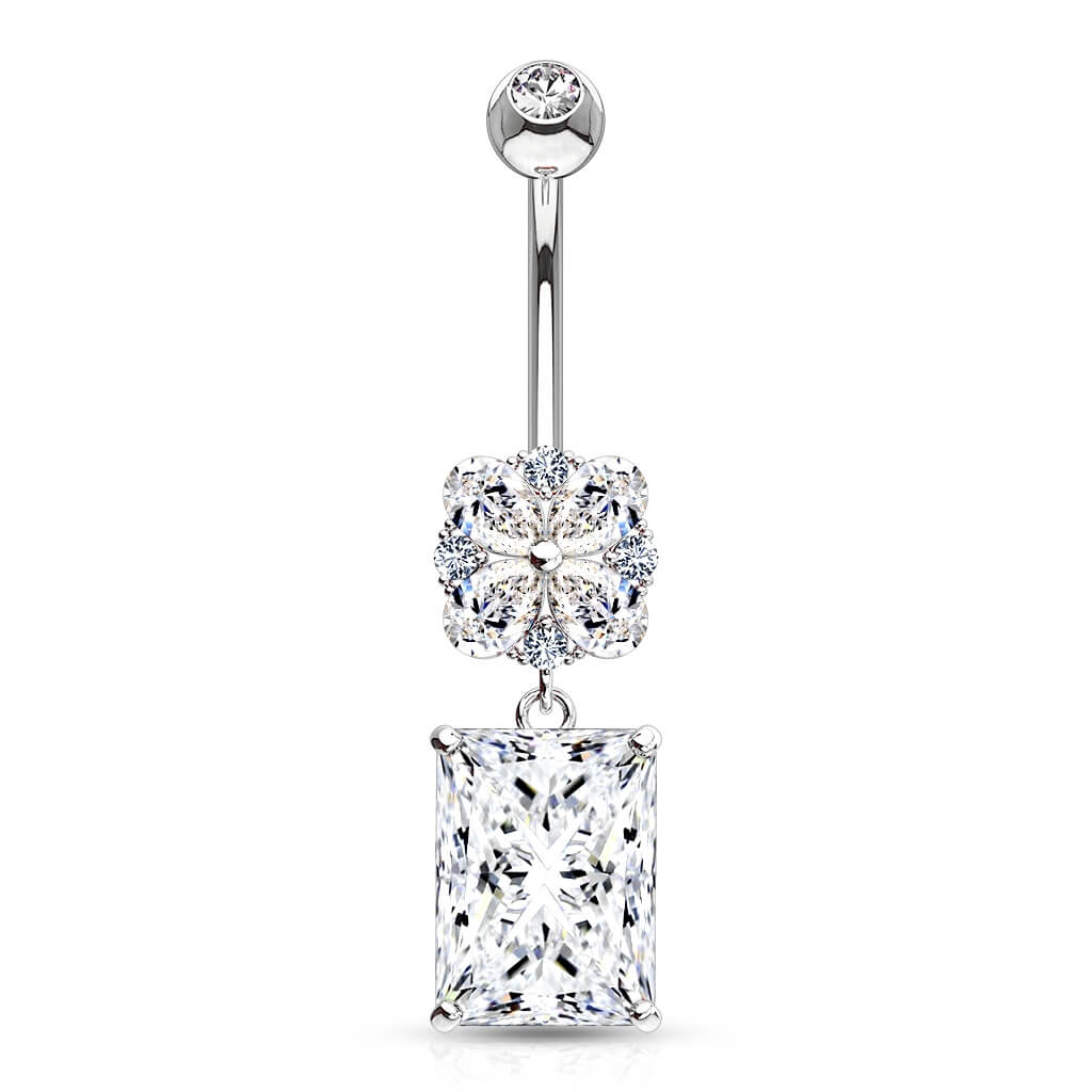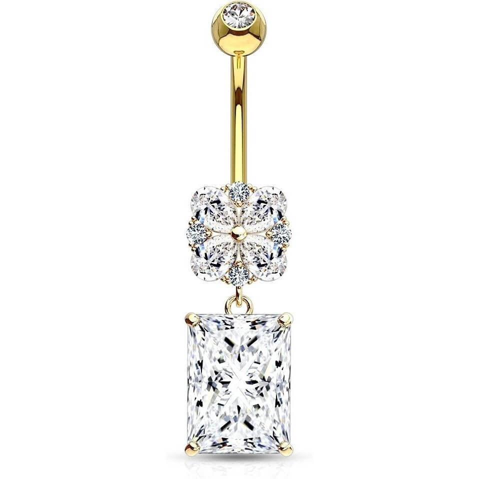 Złoto 585 kolczyk do pępka kwadratowa cyrkonia zawieszka