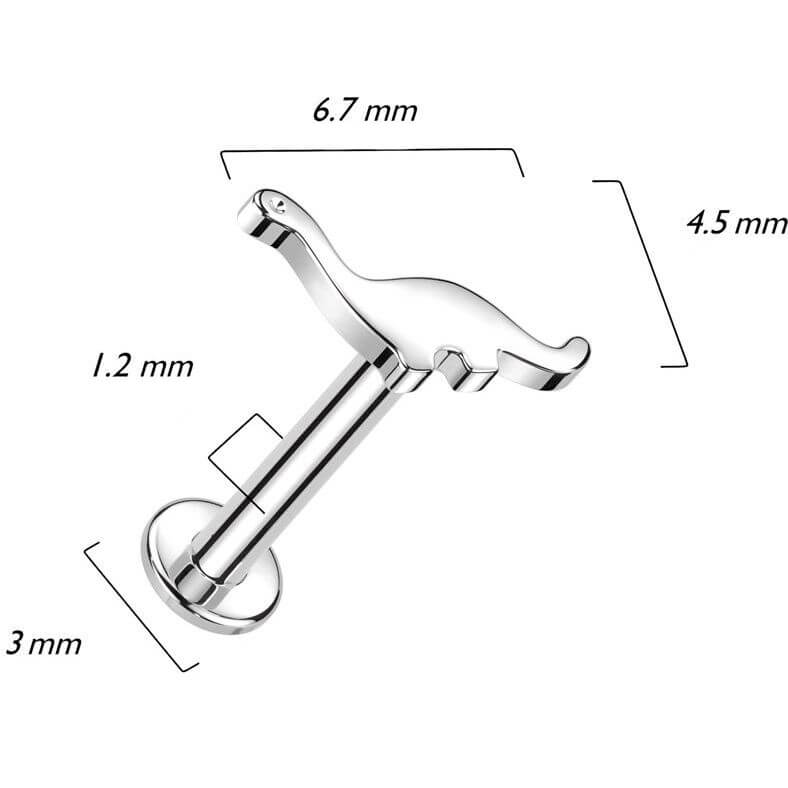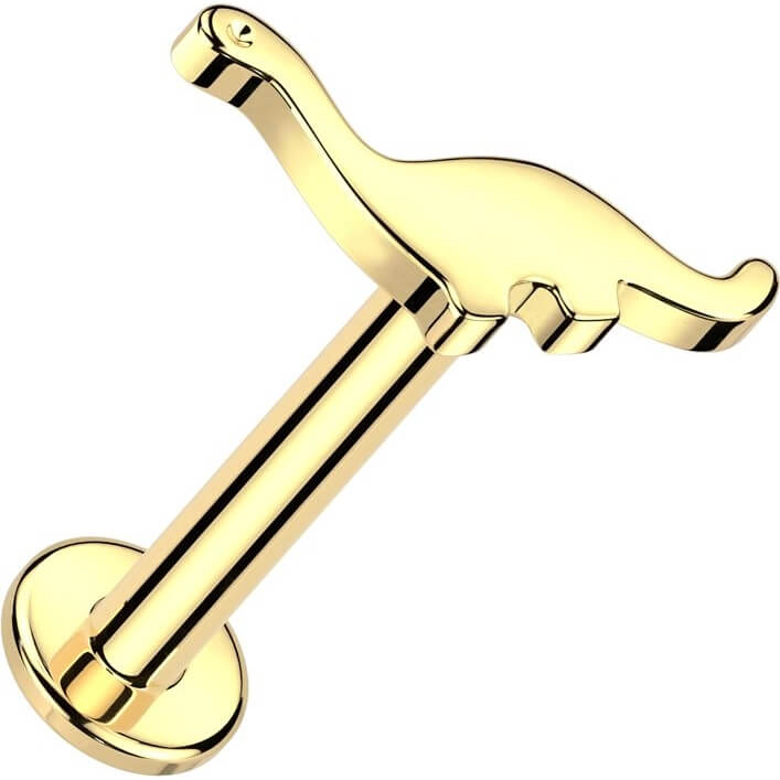Złoto 585 labret dinozaur gwint wewnętrzny