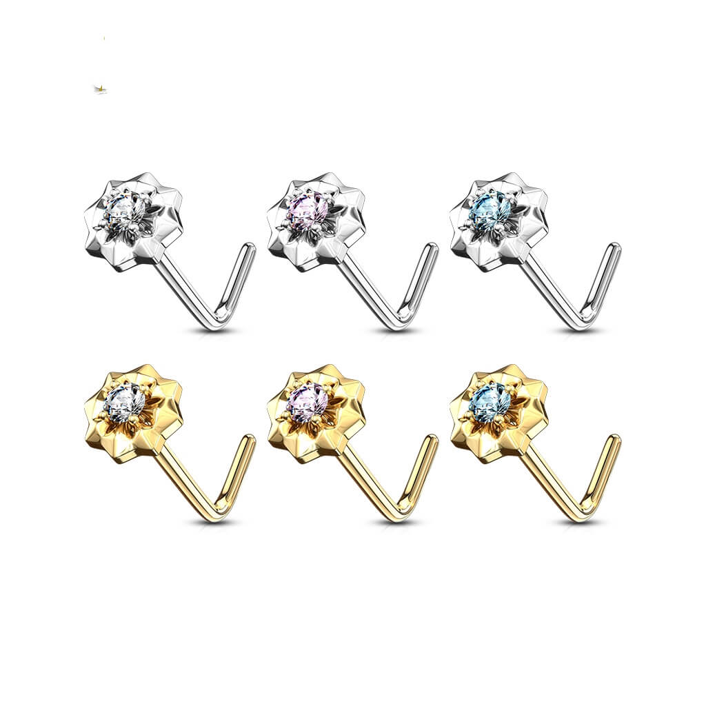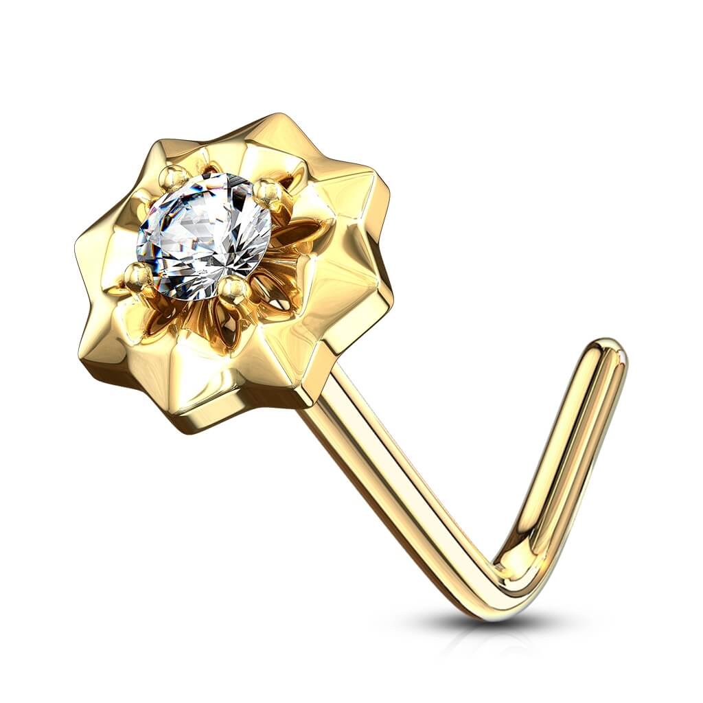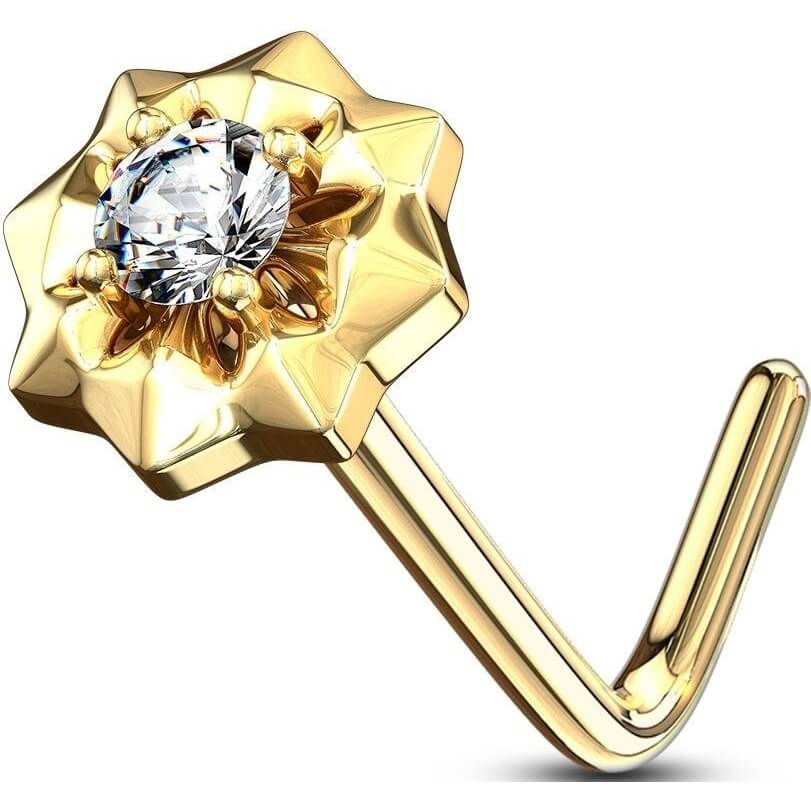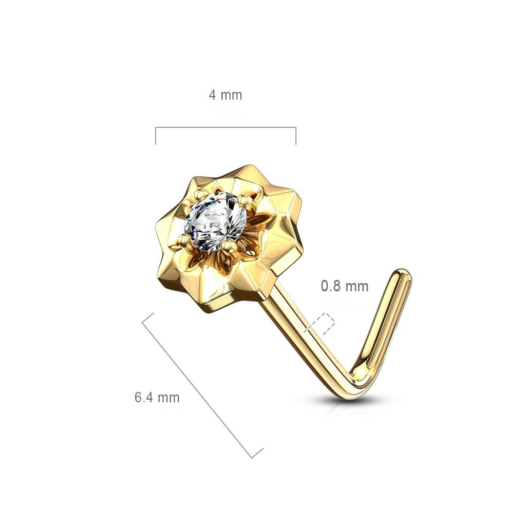 Złoto 585 kolczyk do nosa w kształcie litery l gwiazdka cyrkonia