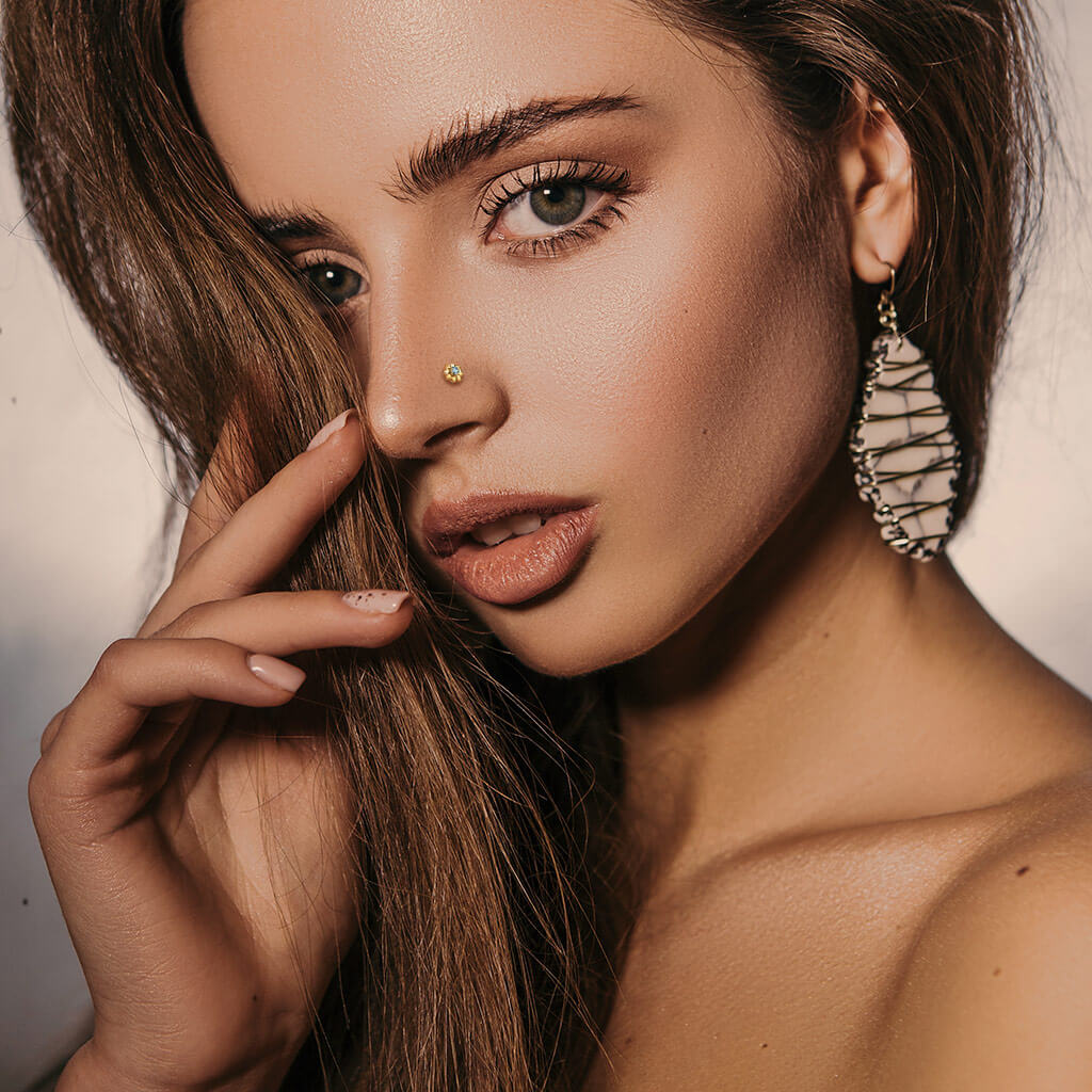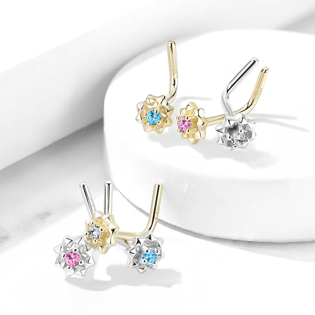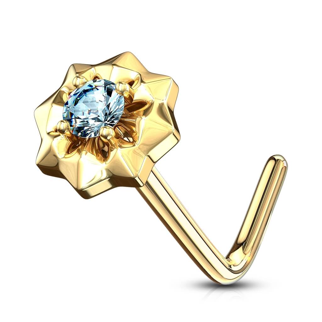 Złoto 585 kolczyk do nosa w kształcie litery l gwiazdka cyrkonia