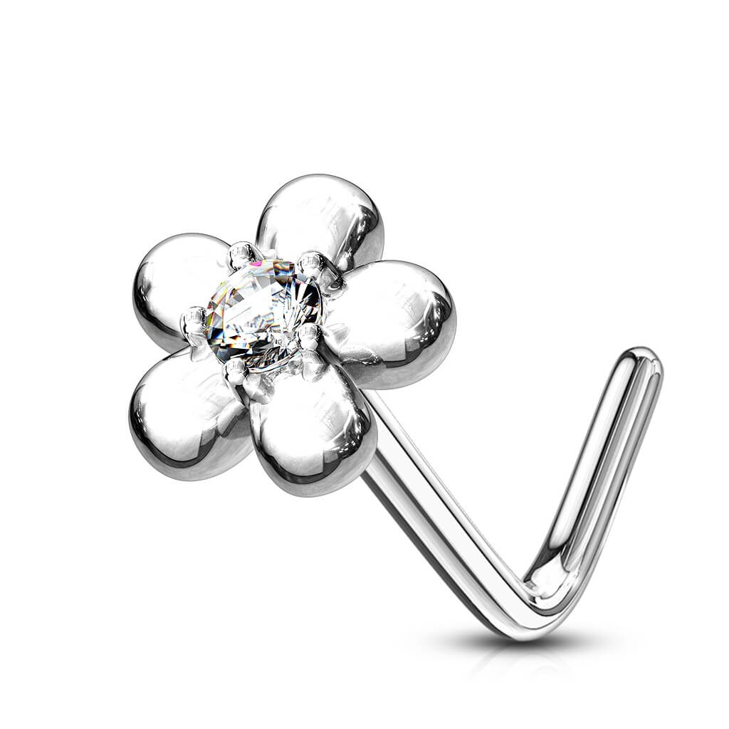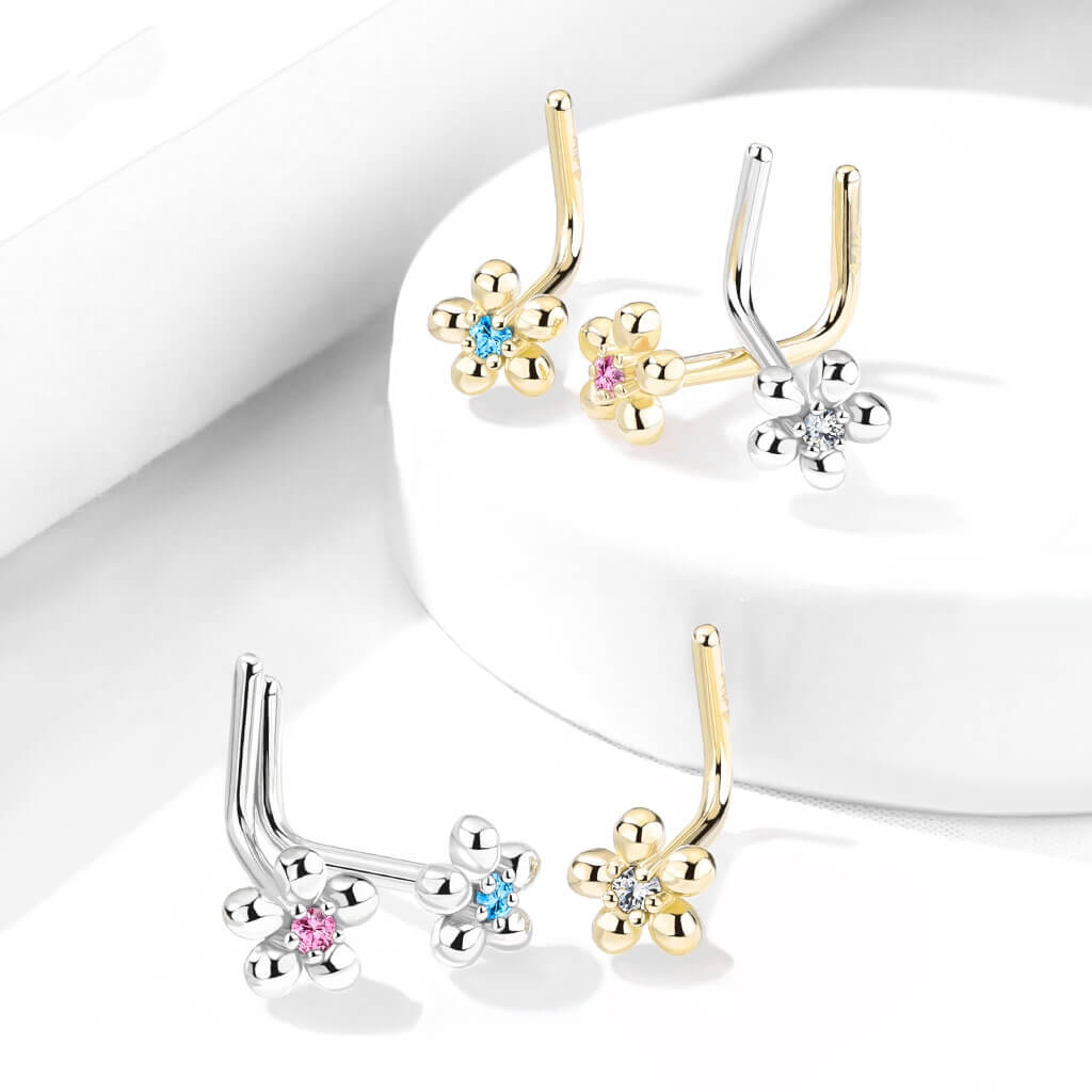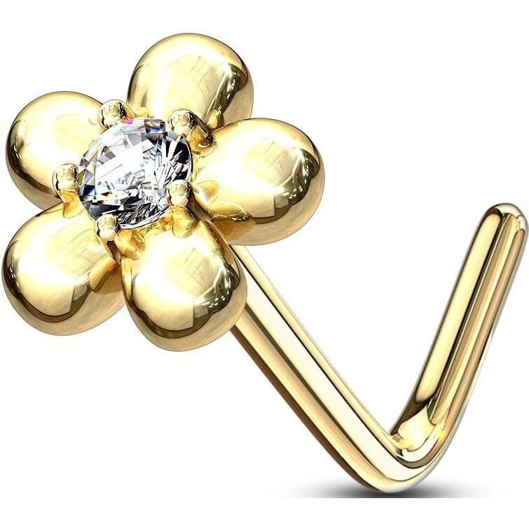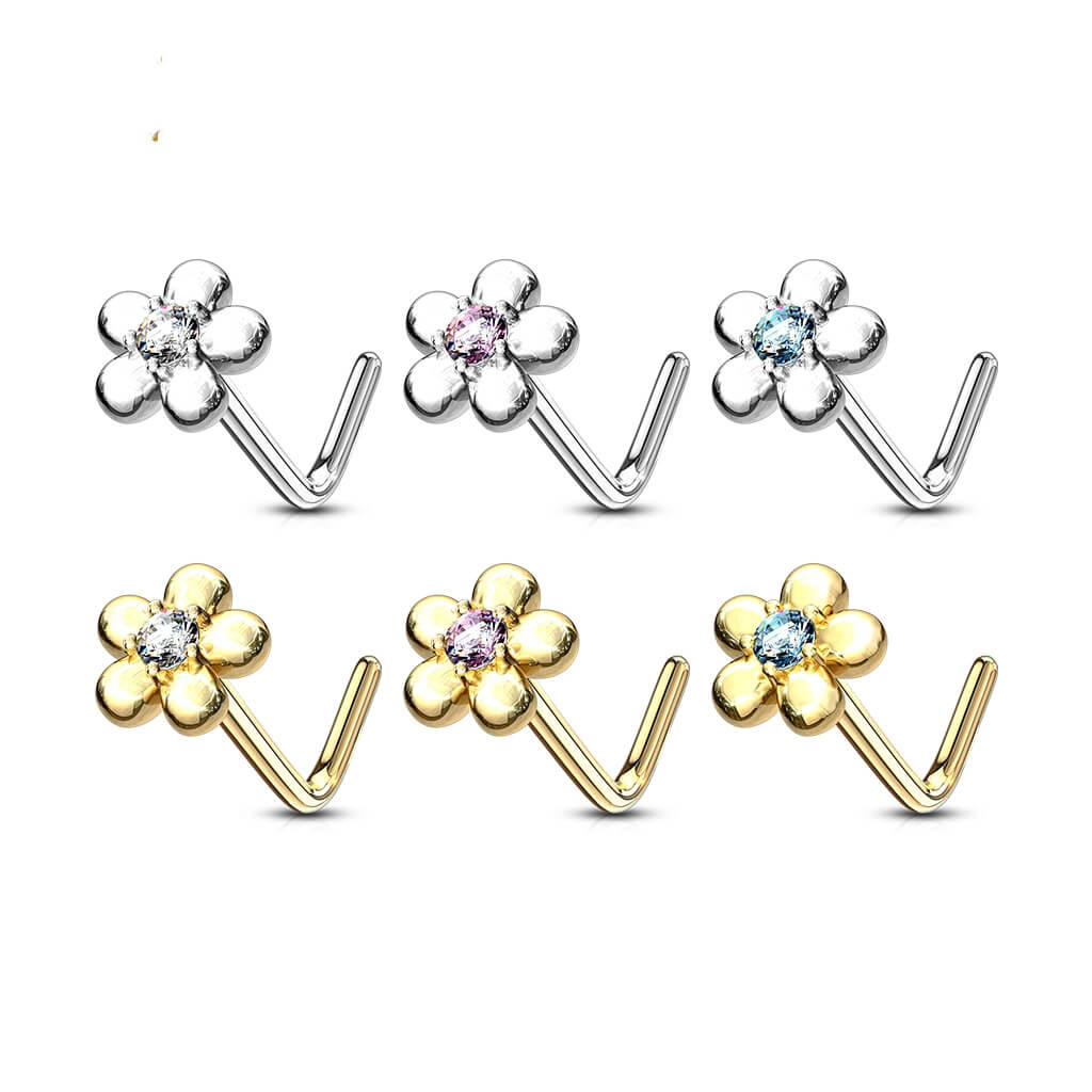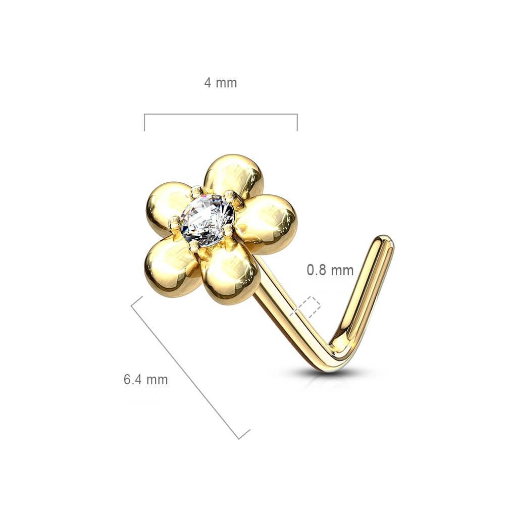 Złoto 585 kolczyk do nosa w kształcie litery l kwiatek cyrkonia