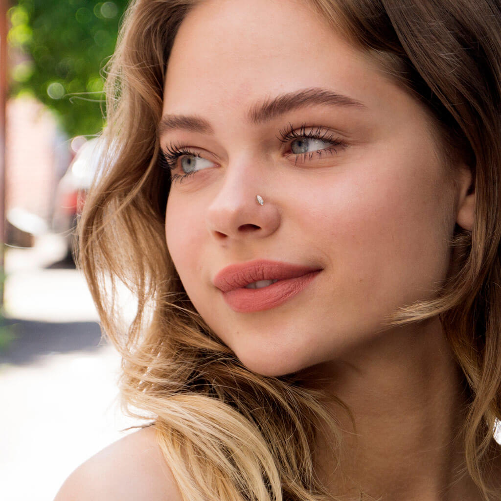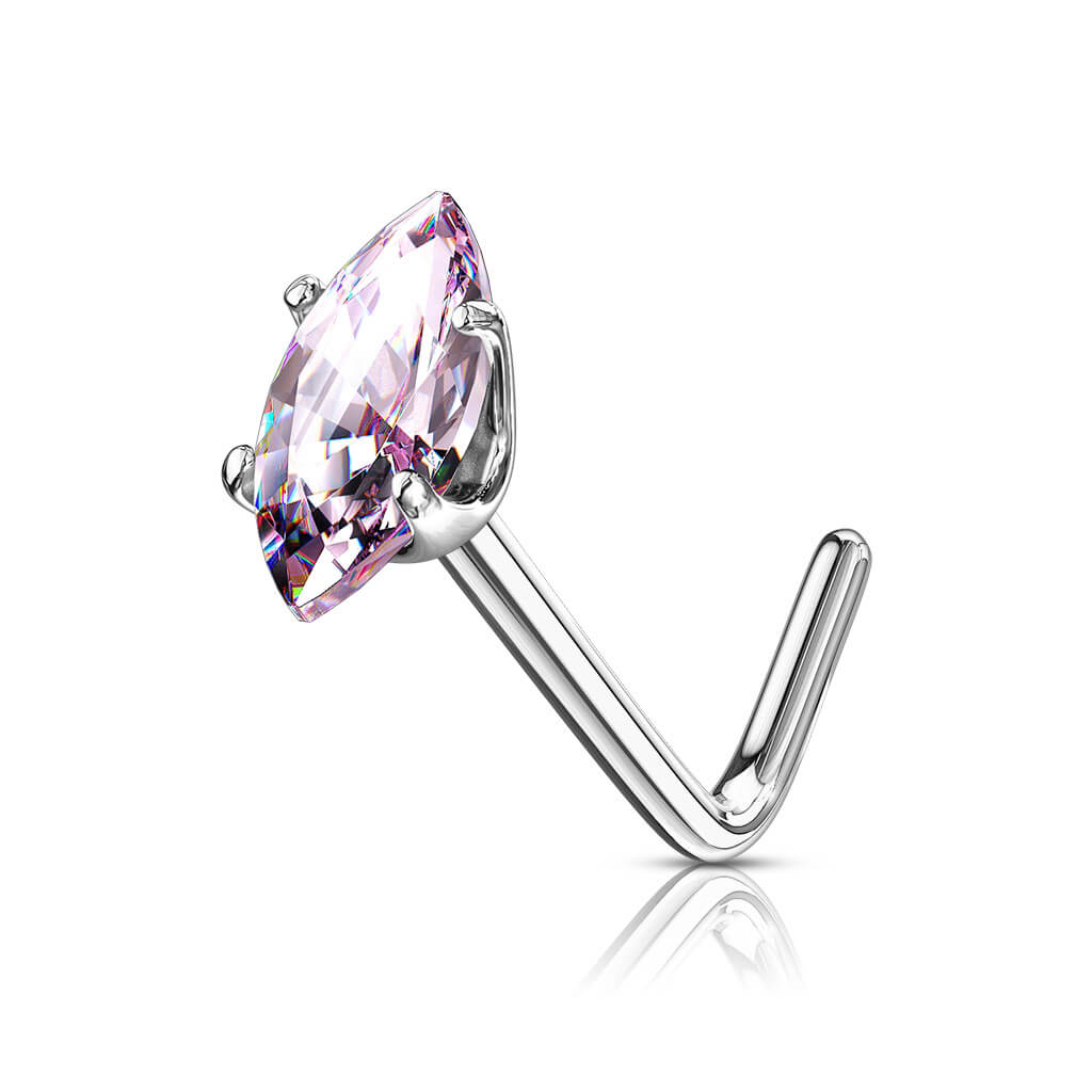 Złoto 585 kolczyk do nosa w kształcie litery l cyrkonia markiza
