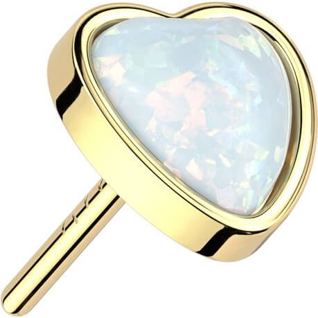 Złoto 585 serce opal push-in