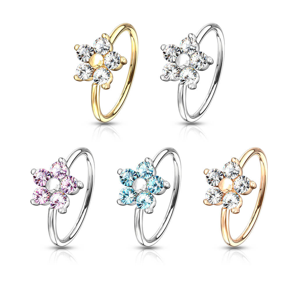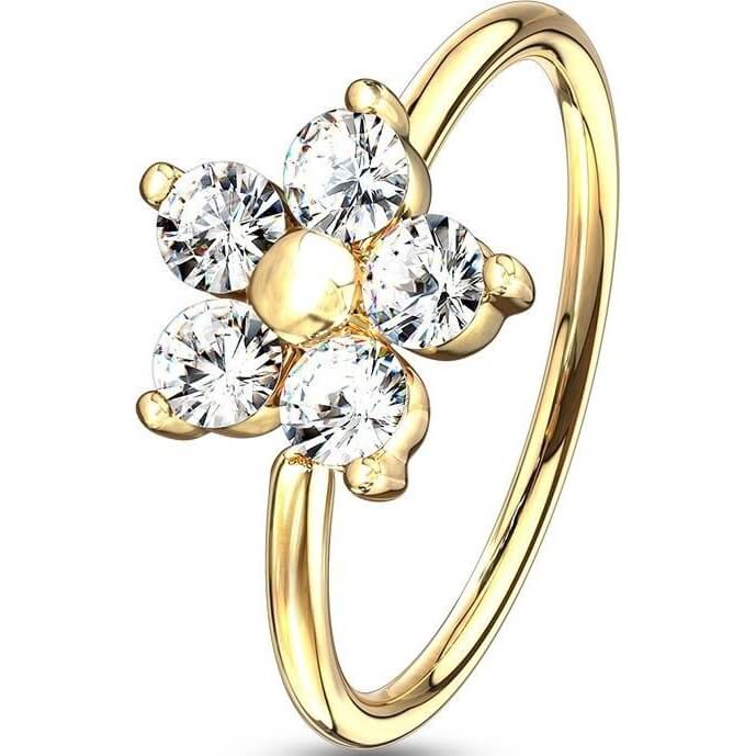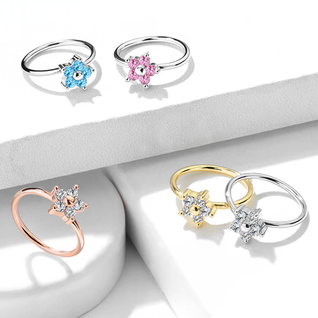 Kółko kwiatek z cyrkoniami kolczyk rozginany