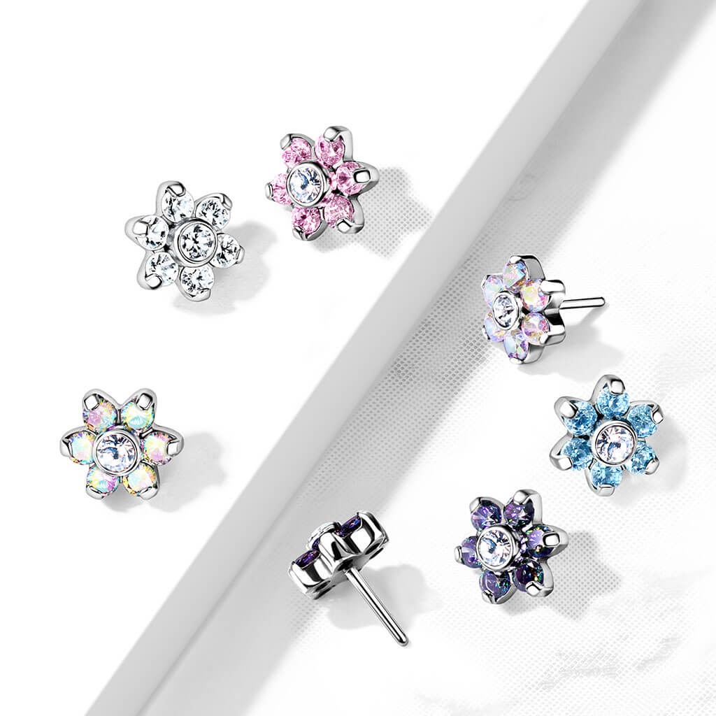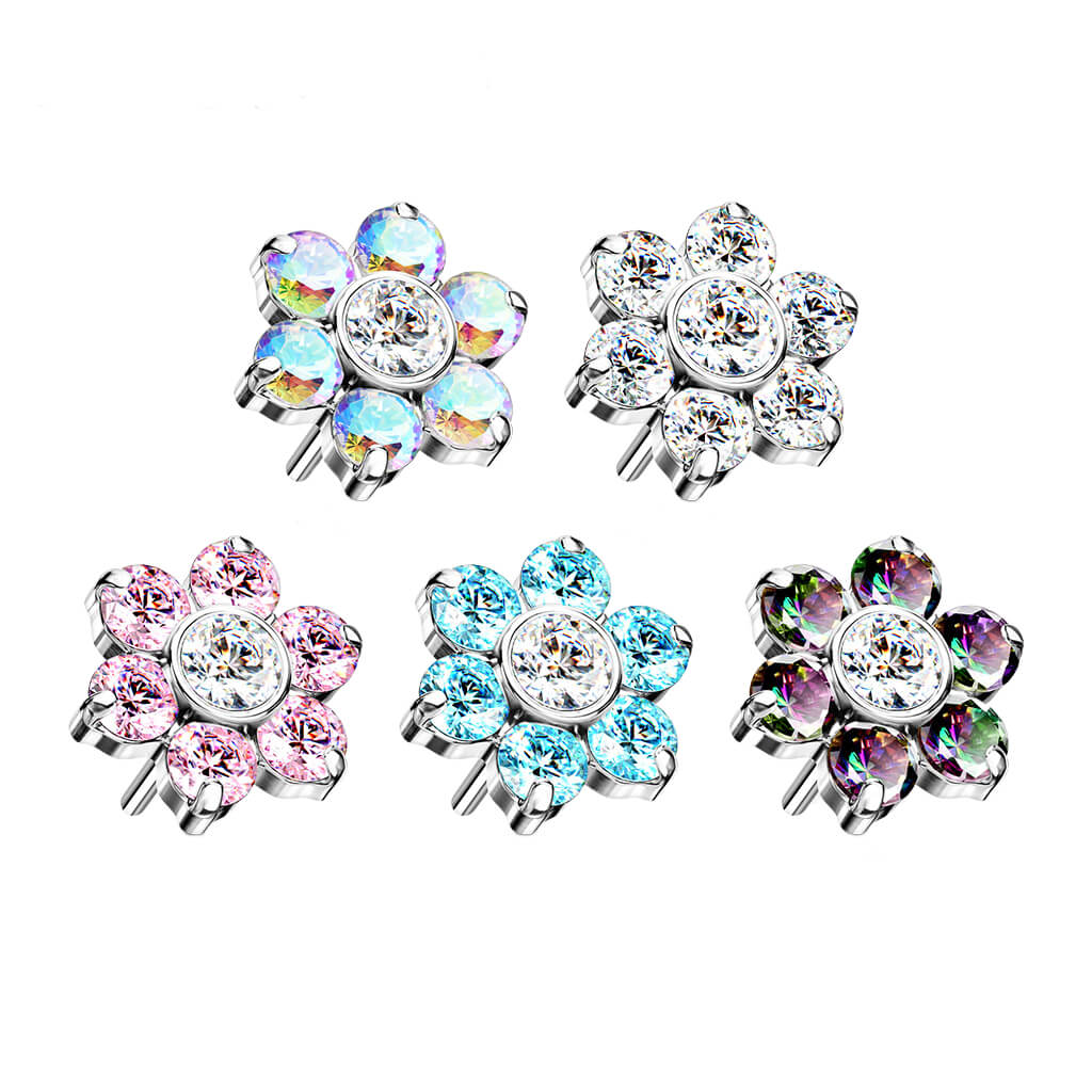 Tytan nakrętka kwiatek z cyrkoniami push-in