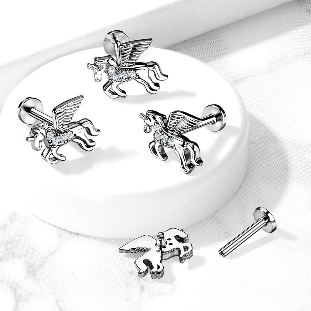 Circonita Unicornio Plata Rosca interna Labret