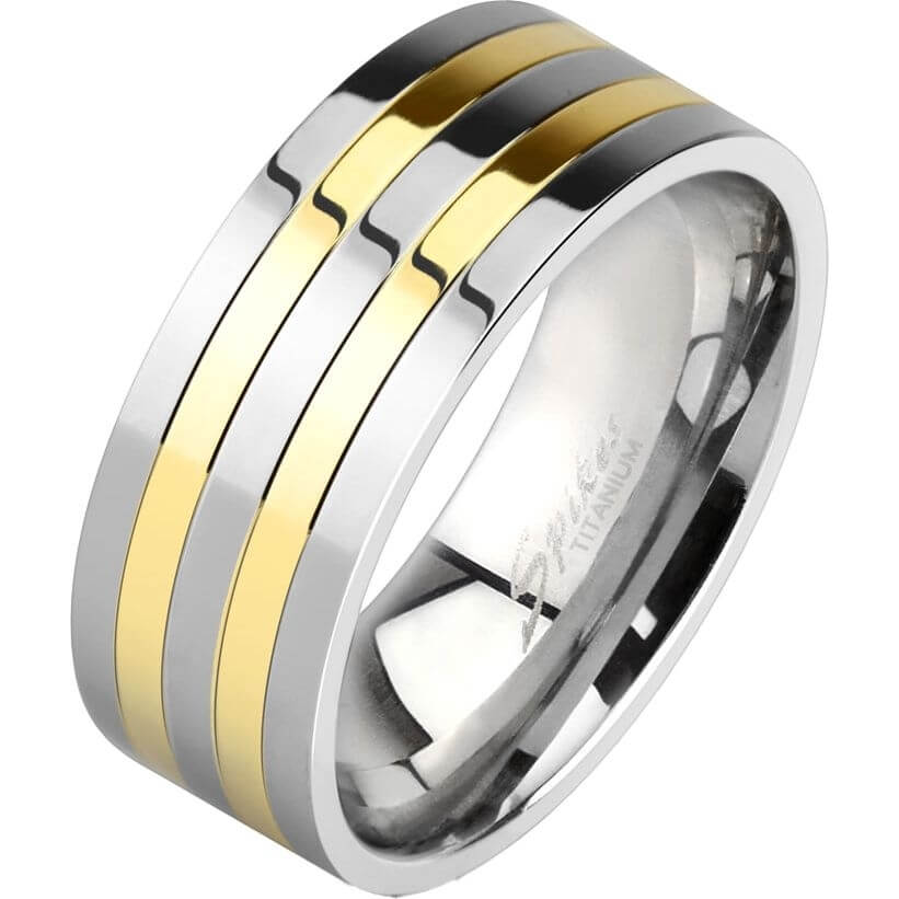 Titanio Plata con doble línea dorada